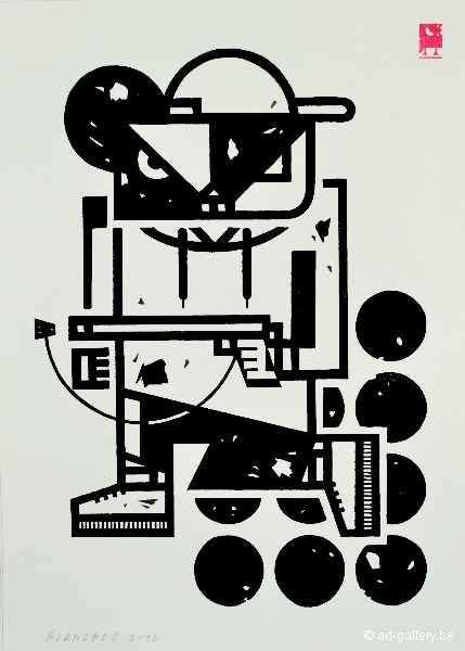 Peinture originale sur papier signé et daté au crayon par Blanbec. Ce travail fait partie de l'exposition « Trafik 'qui aura lieu du 16/07 jusqu'au 07/08 dans notre galerie à Knokke. Encadrée dans un cadre blanc avec du verre anti-reflets.