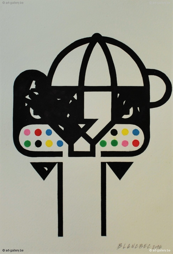 Peinture originale sur papier signé et daté au crayon par Blanbec. Ce travail fait partie de l'exposition « Trafik 'qui aura lieu du 16/07 jusqu'au 07/08 dans notre galerie à Knokke. Encadrée dans un cadre blanc avec du verre anti-reflets.
