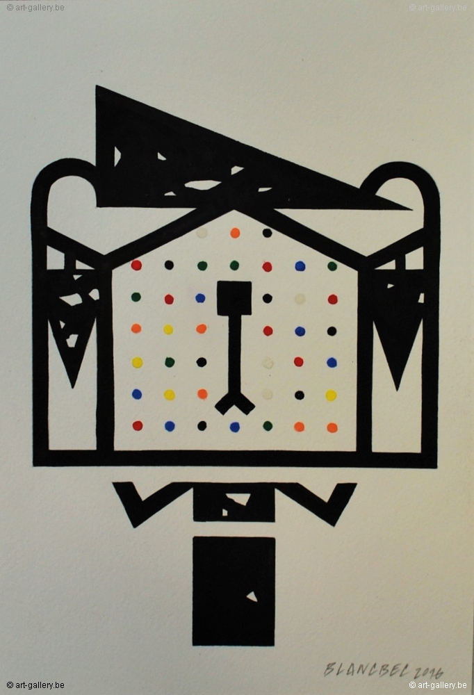 Peinture originale sur papier signé et daté au crayon par Blanbec. Ce travail fait partie de l'exposition « Trafik 'qui aura lieu du 16/07 jusqu'au 07/08 dans notre galerie à Knokke. Encadrée dans un cadre blanc avec du verre anti-reflets.