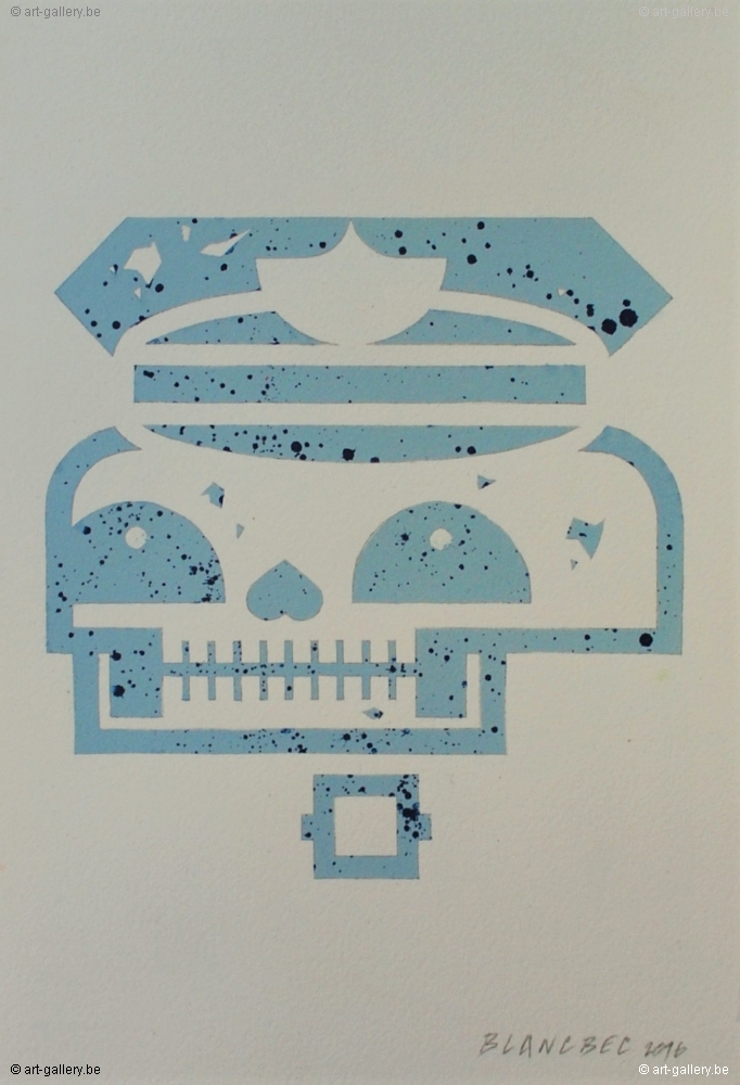 Peinture originale sur papier signé et daté au crayon par Blanbec. Ce travail fait partie de l'exposition « Trafik 'qui aura lieu du 16/07 jusqu'au 07/08 dans notre galerie à Knokke. Encadrée dans un cadre blanc avec du verre anti-reflets.