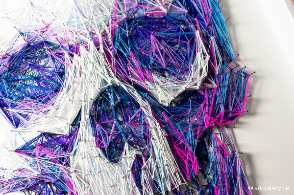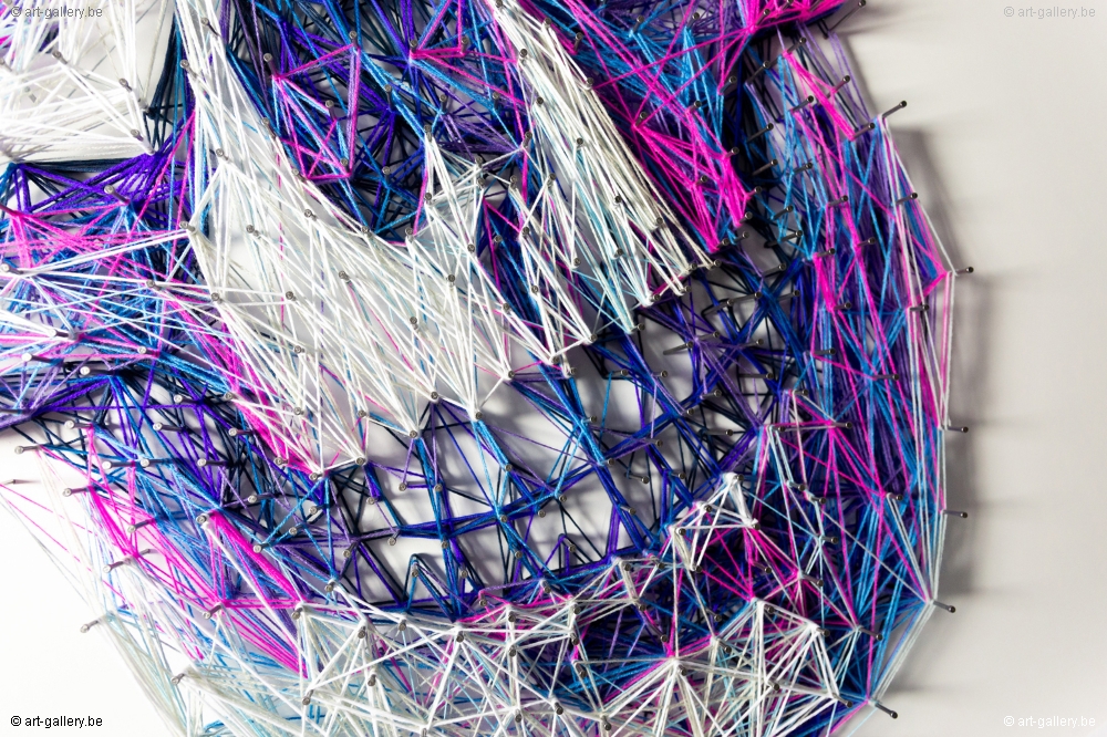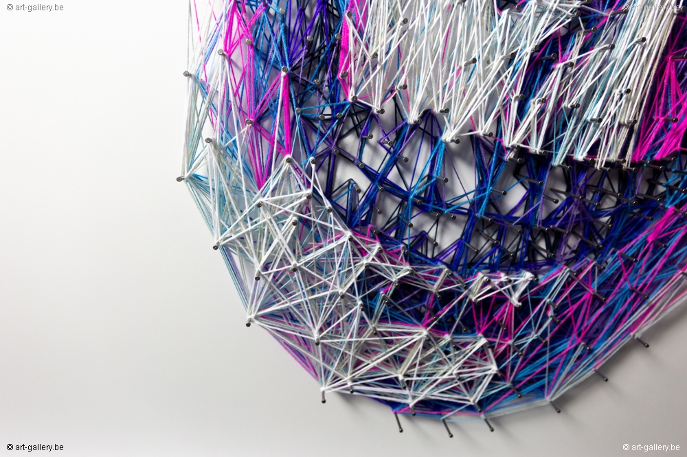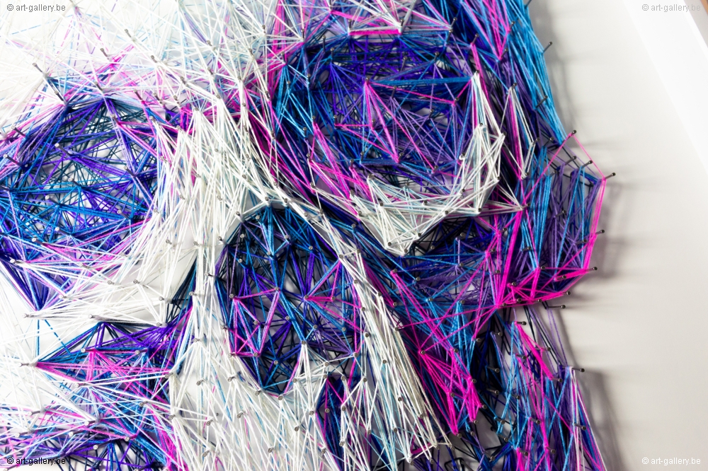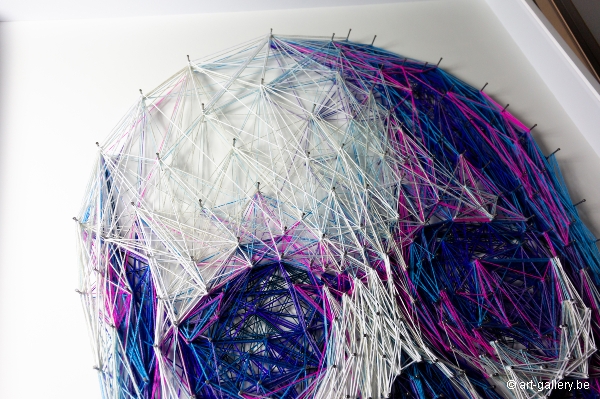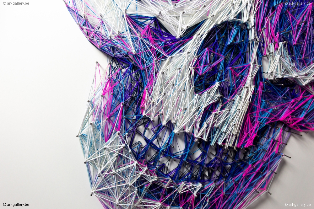 Oeuvre originale de crâne de cordes par Steve Locatelli. L'?uvre est montée derrière une vitre de musée antireflet et porte une signature. Le crâne était composé de clous construits en forme de crâne. Ensuite, les ongles ont été connectés avec des fils pour créer un bel effet 3D. Selon Steve, un crâne est si universel que vous ne pouvez pas voir si c'était un garçon ou une fille ou si c'était une personne blanche, africaine ou chinoise. Nous sommes tous pareil!