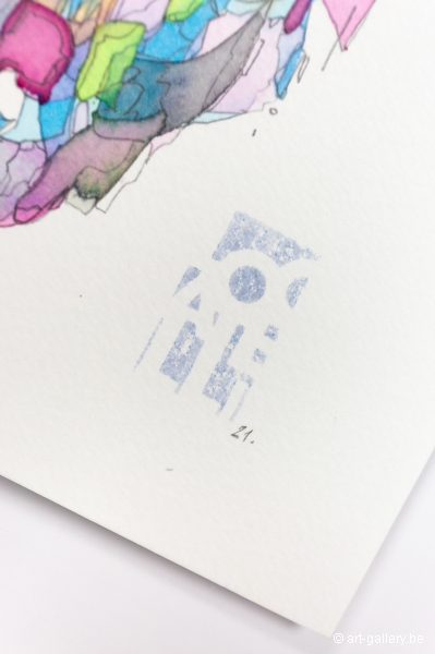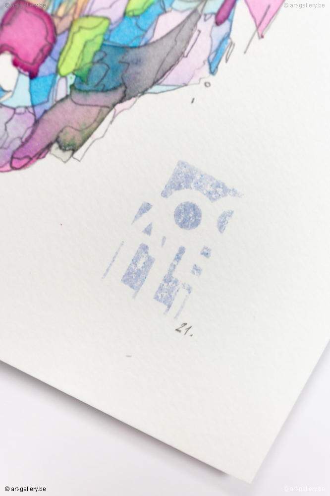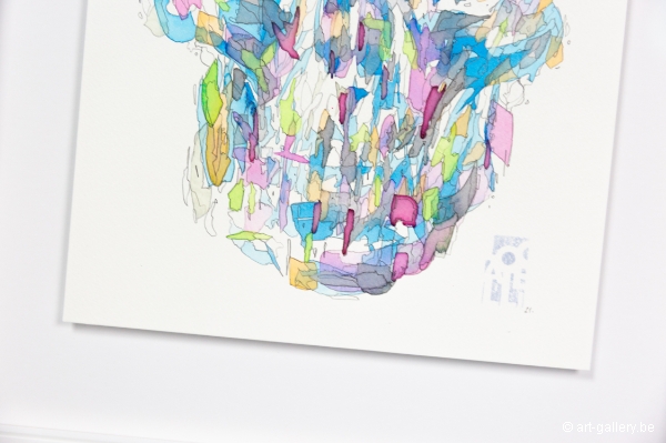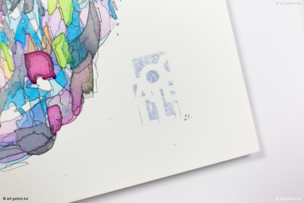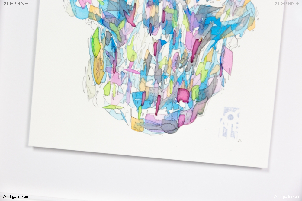 Peinture à l'aquarelle unique sur papier pour la collection/exposition U N Y V E R S A L en août 2021. Monté dans un cadre avec verre antireflet. Dimensions cadre 41,5 cm x 33 cm.