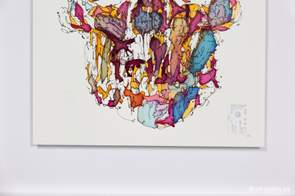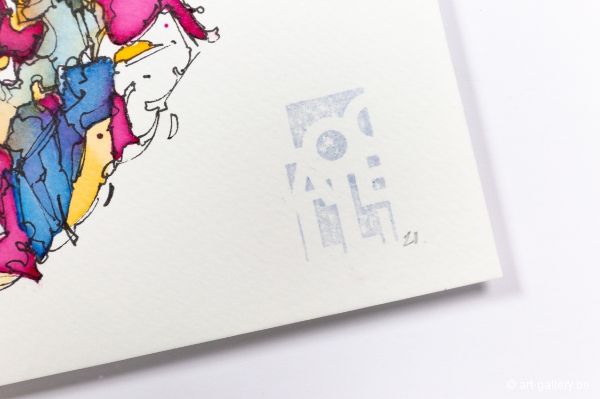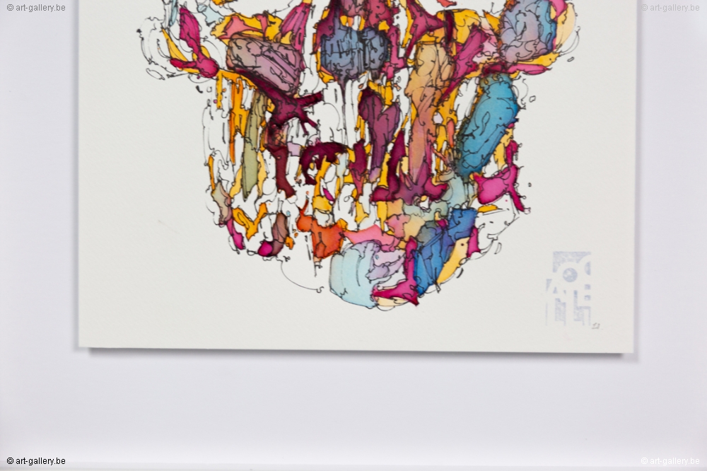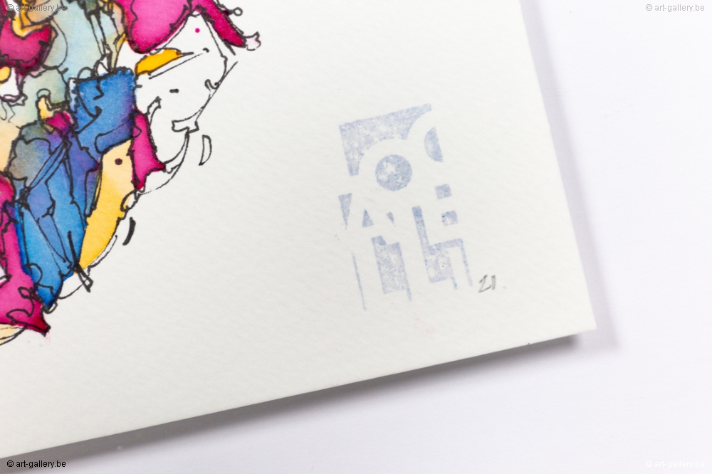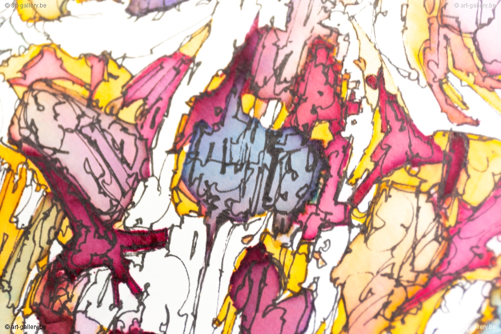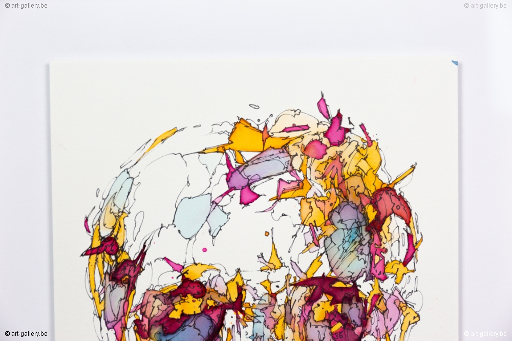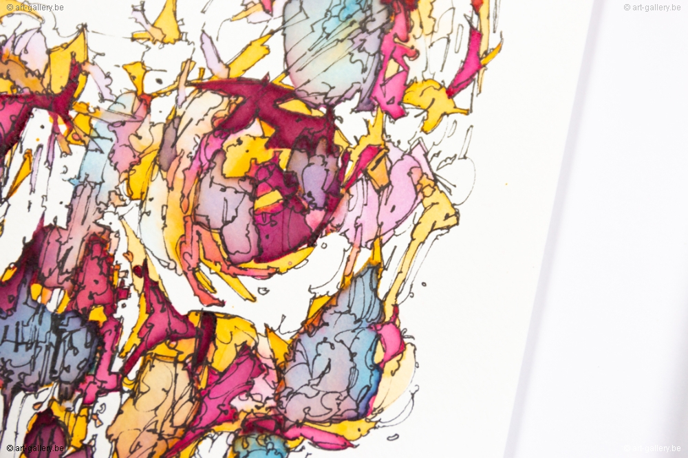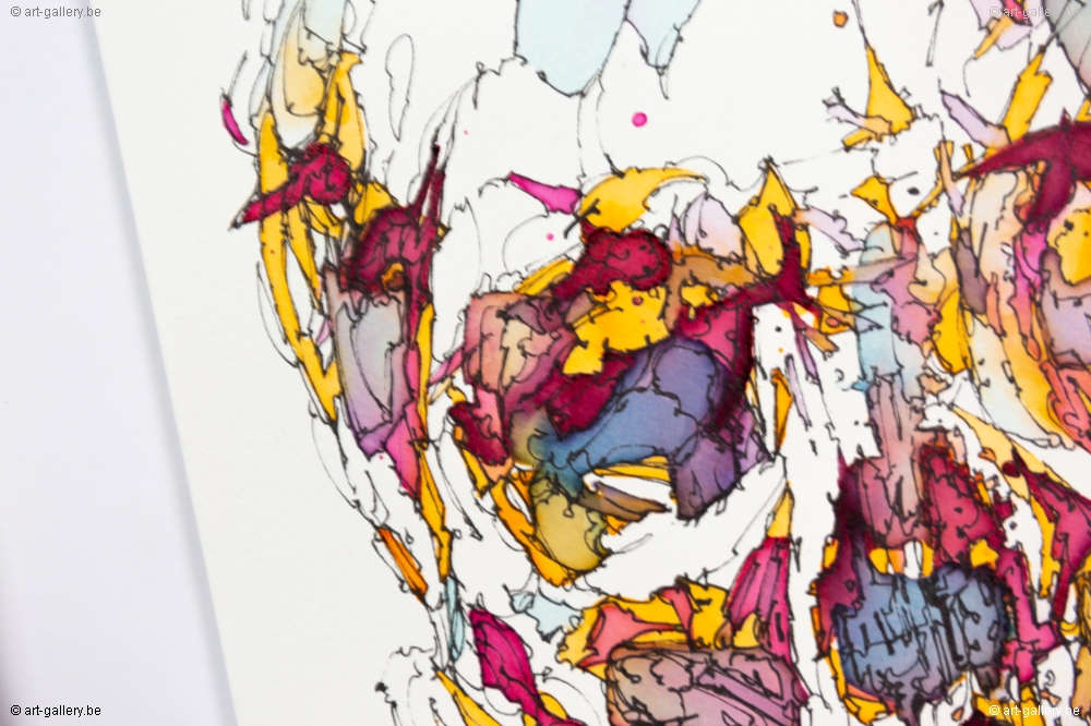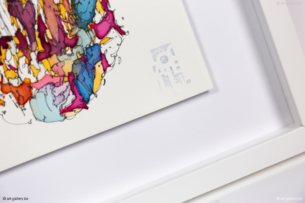 Peinture à l'aquarelle unique sur papier pour la collection/exposition U N Y V E R S A L en août 2021. Monté dans un cadre avec verre antireflet. Dimensions cadre 41,5 cm x 33 cm.