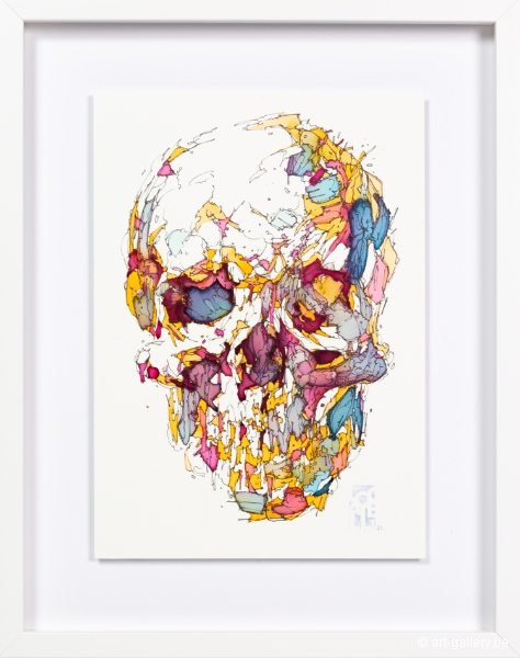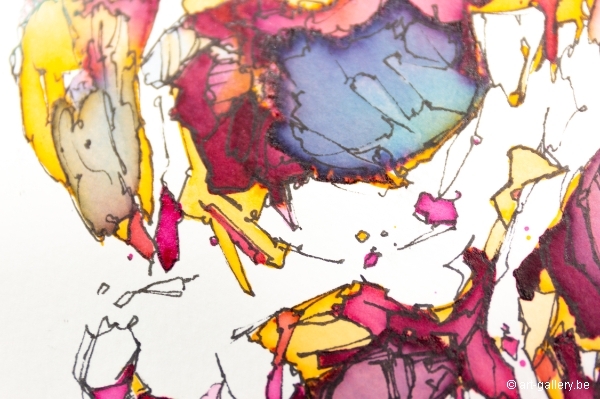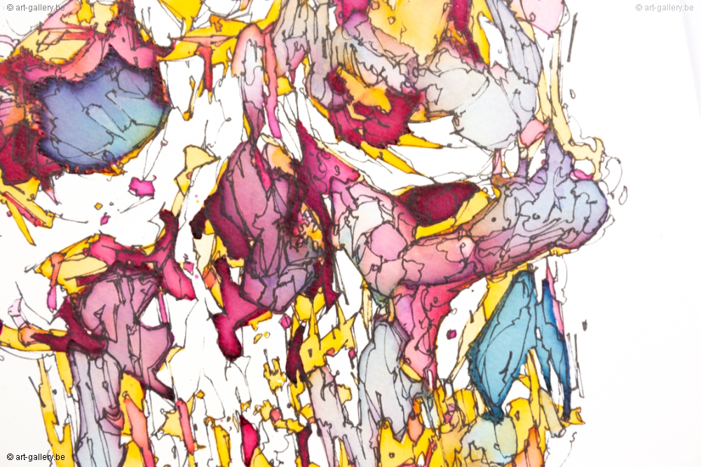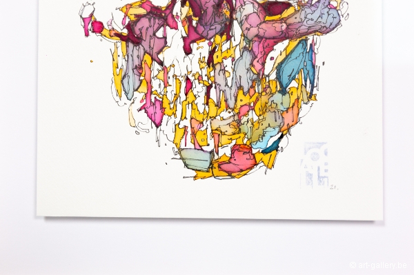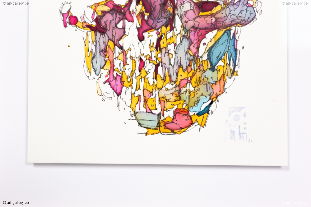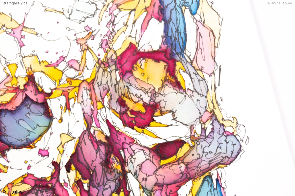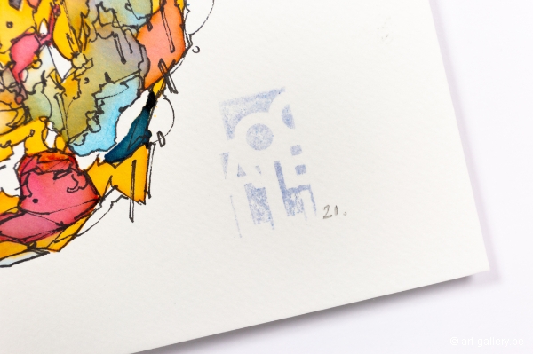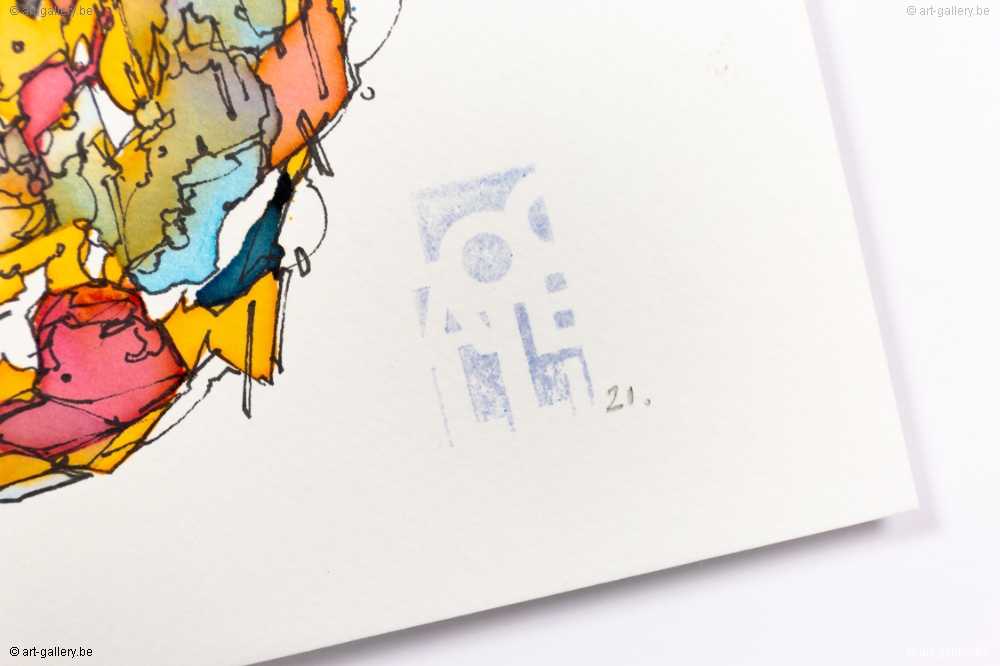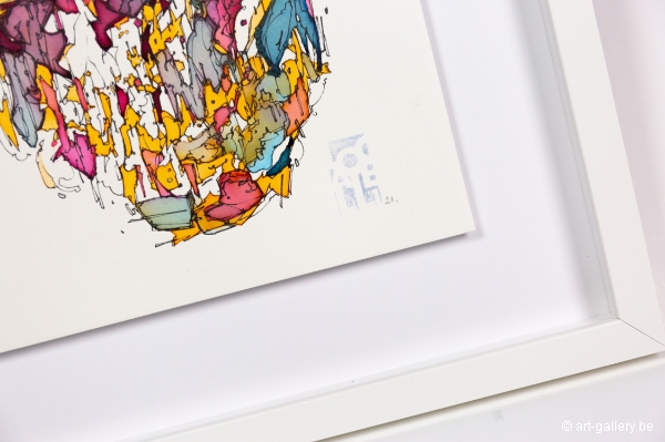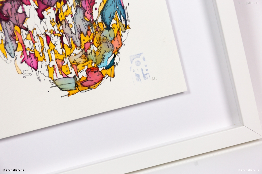 Peinture à l'aquarelle unique sur papier pour la collection/exposition U N Y V E R S A L en août 2021. Monté dans un cadre avec verre antireflet. Dimensions cadre 41,5 cm x 33 cm.