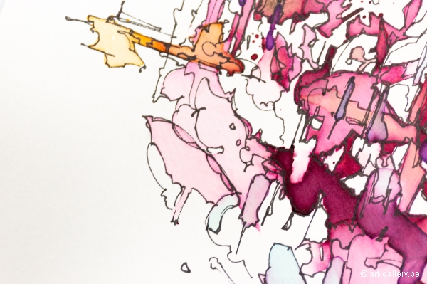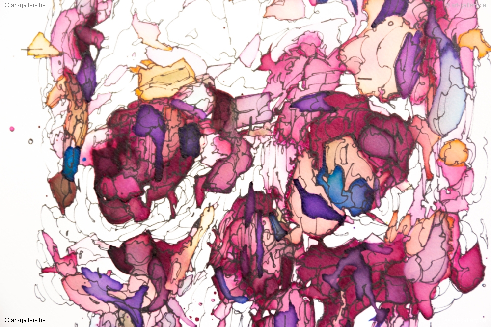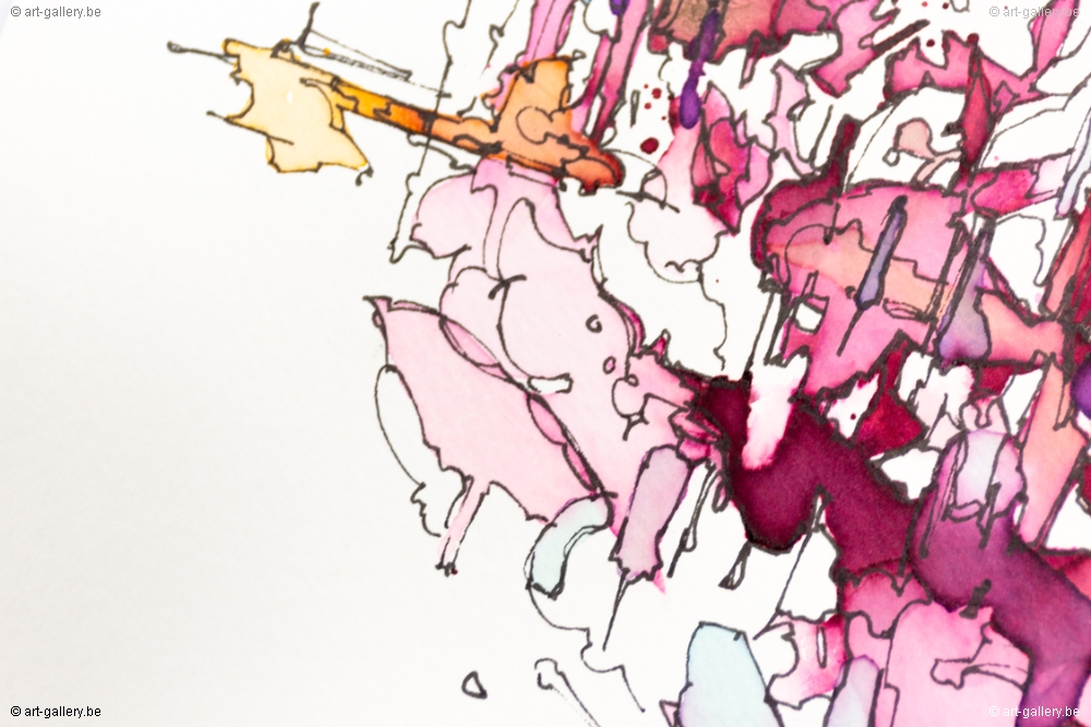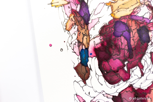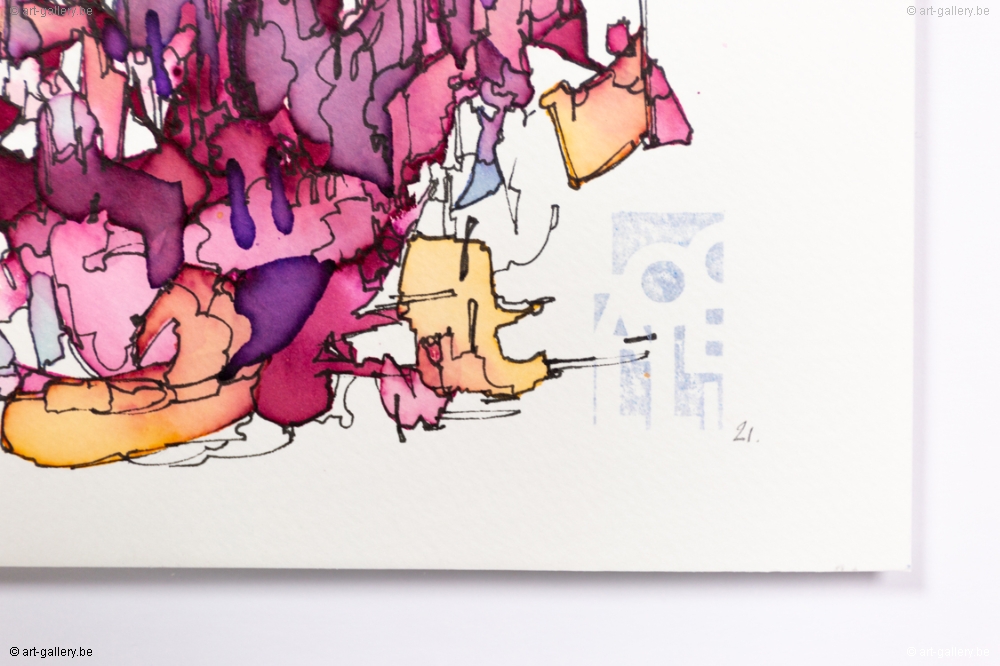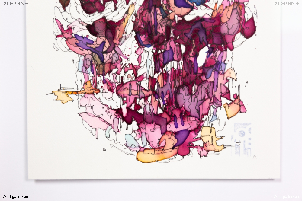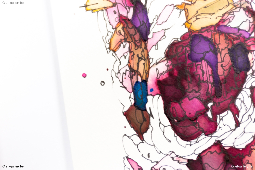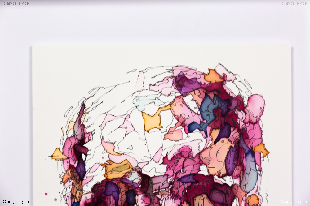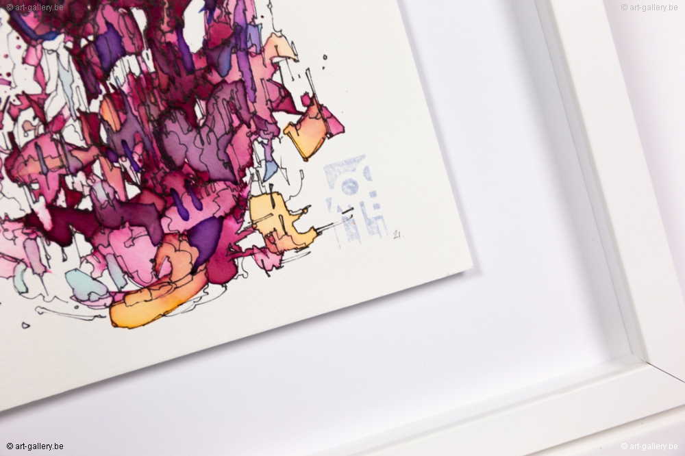 Peinture à l'aquarelle unique sur papier pour la collection/exposition U N Y V E R S A L en août 2021. Monté dans un cadre avec verre antireflet. Dimensions cadre 41,5 cm x 33 cm.