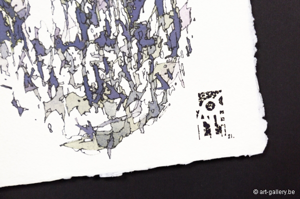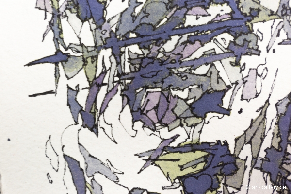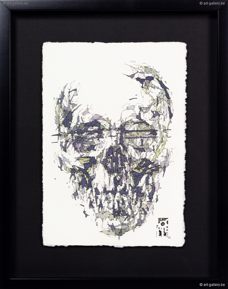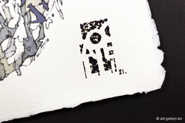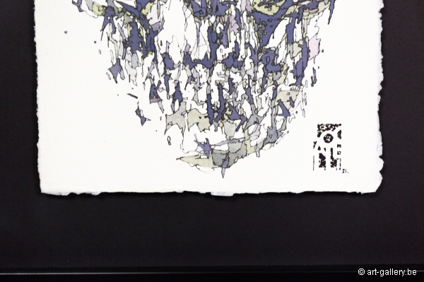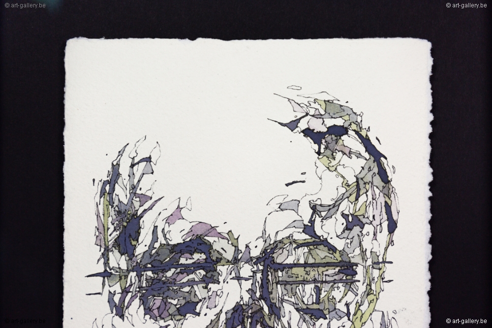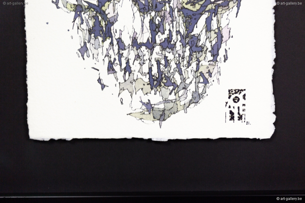 Peinture à l'aquarelle unique sur papier pour la collection/exposition U N Y V E R S A L en août 2021. Monté dans un cadre avec verre antireflet. Dimensions cadre 41,5 cm x 33 cm.