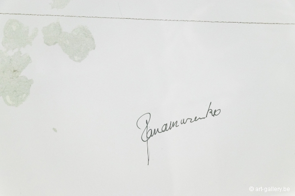 Propslibelle est une sérigraphie sur aluminium. Signé et numéroté sur 40 exemplaires. Au début des années 1970, Panamarenko a développé un oeil sur les mécanismes de vol des insectes, sur la base desquels il a réalisé un certain nombre de conceptions pour rendre ces principes applicables à l'homme. Propslibelle est un bec de canard delta avec entraînement par batteur.