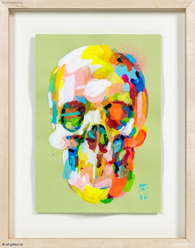 Peinture originale et unique à la peinture acrylique sur papier. Encadré dans un cadre en bois avec verre musée antireflet. L'oeuvre fait partie de l'exposition d'été L Y F E '22.