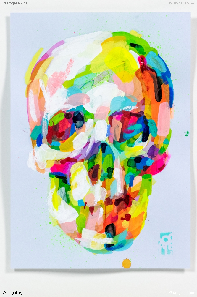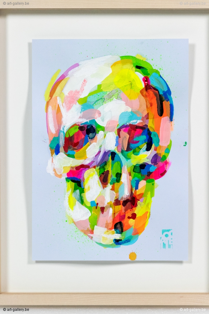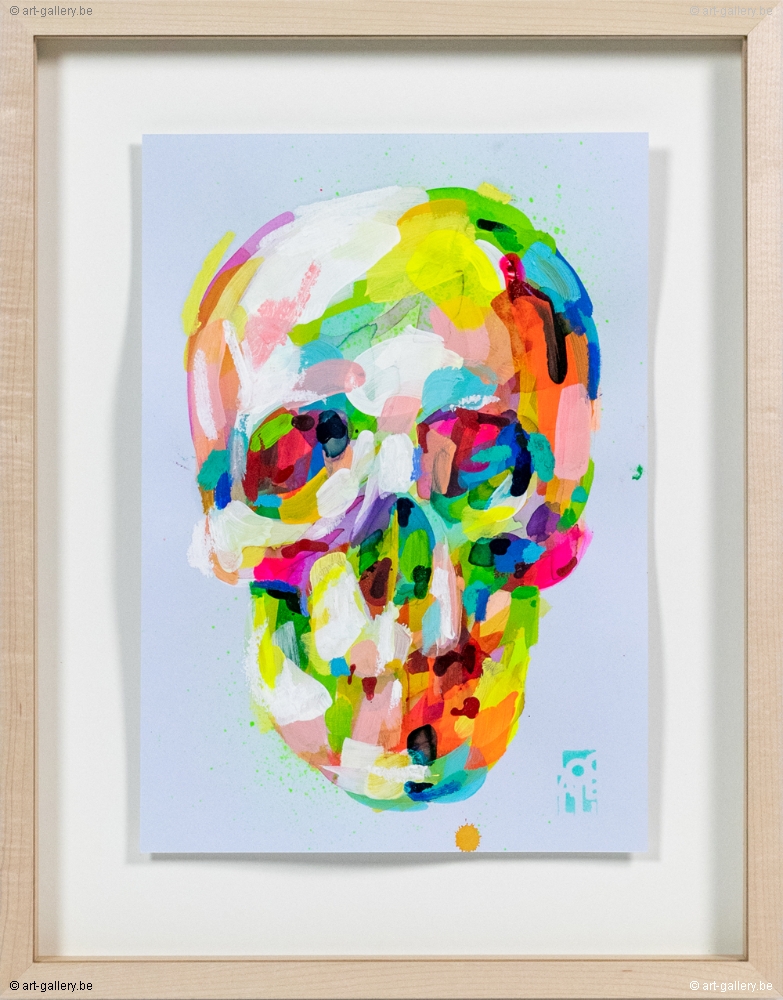 Peinture originale et unique à la peinture acrylique sur papier. Encadré dans un cadre en bois avec verre musée antireflet. L'oeuvre fait partie de l'exposition d'été L Y F E '22.