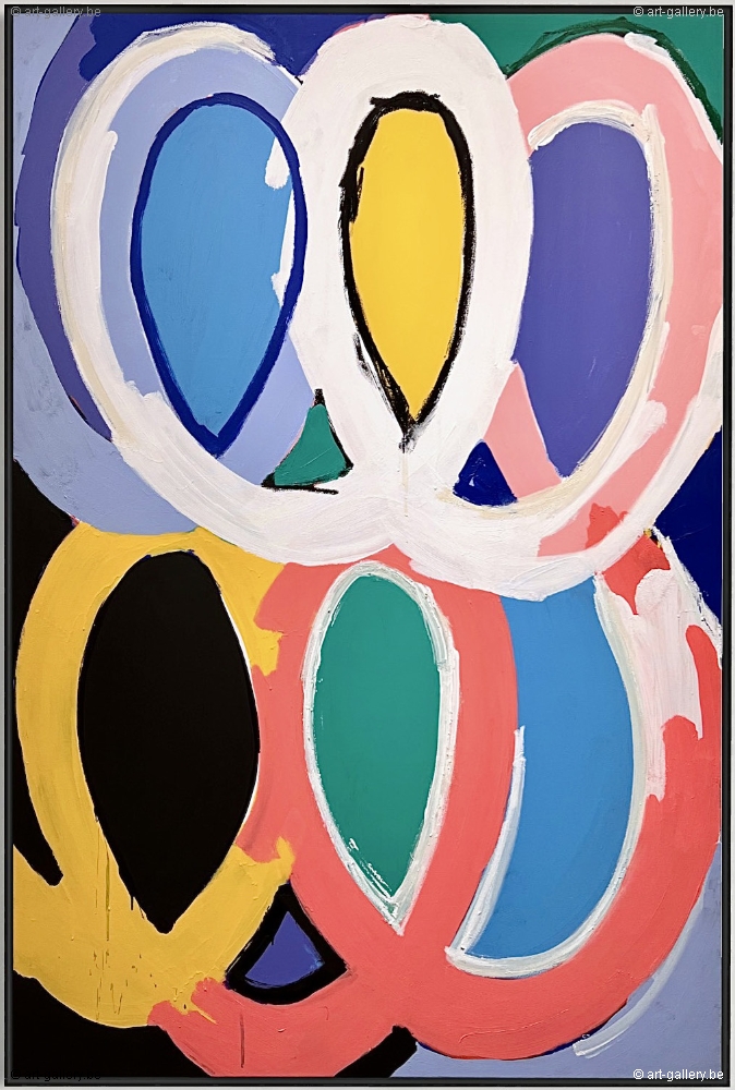 Peinture originale sur toile par Piroeh One. L'oeuvre est encadrée et prête à être accrochée. Cette peinture contient les Swoons bien connus, des cercles elliptiques qui reviennent sans cesse dans son travail.
