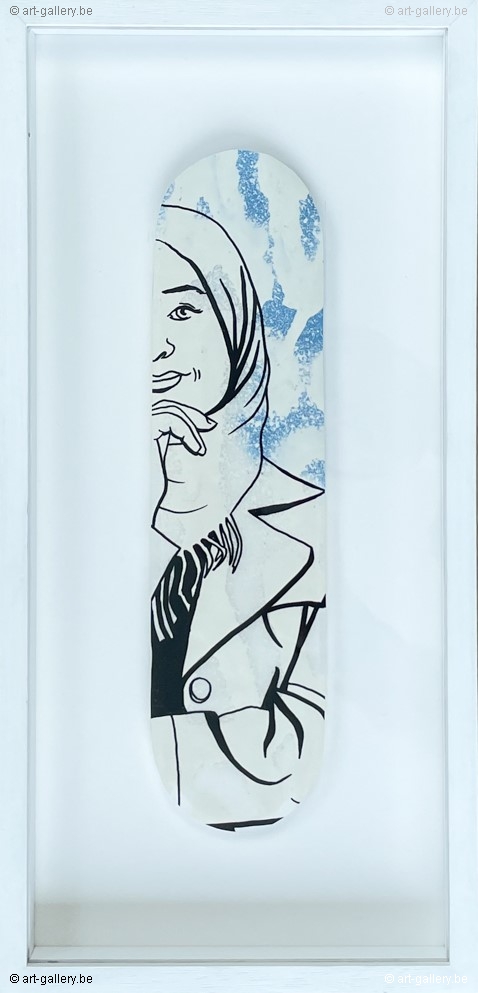 Oeuvre originale sur papier réalisée par Denis Meyers. L'oeuvre est encadrée dans un cadre blanc. Dimensions cadre compris 40 x 19 cm.