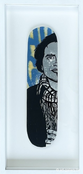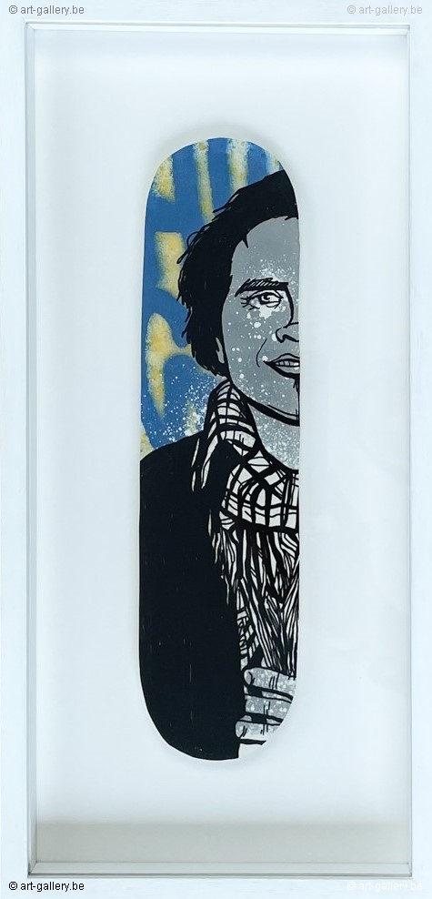 Oeuvre originale sur papier réalisée par Denis Meyers. L'oeuvre est encadrée dans un cadre blanc. Dimensions cadre compris 40 x 19 cm.