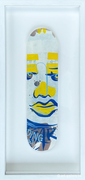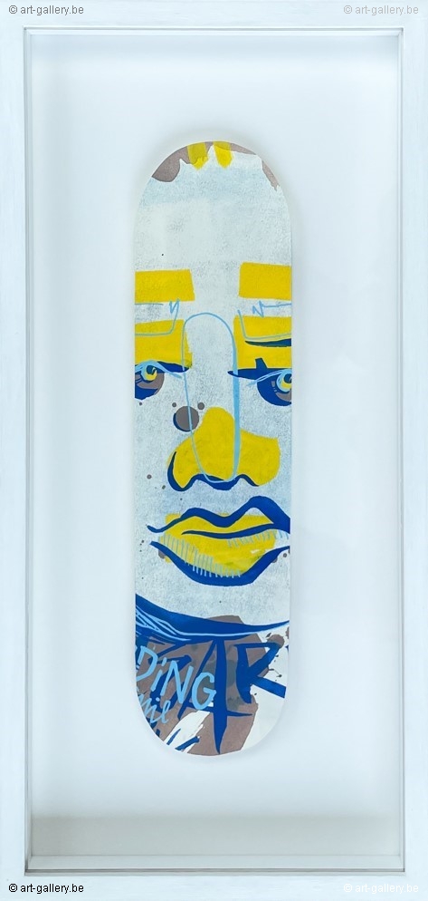 Oeuvre originale sur papier réalisée par Denis Meyers. L'oeuvre est encadrée dans un cadre blanc. Dimensions cadre compris 40 x 19 cm.