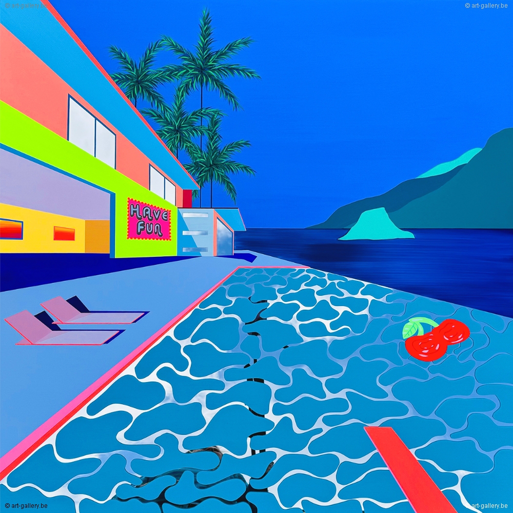 Peinture acrylique originale sur miroir Plexi. L'oeuvre est encadrée par un cadre en métal léger. Sans savoir où l'on se trouve, ni sans savoir ce qui va se passer ensuite, on se retrouve dans des lieux mystérieusement colorés. Des espaces calmes et sereins qui semblent perdus dans le temps et dépourvus de vie. Et pourtant... Puis un mouvement se produit et les surfaces des miroirs commencent à animer les tableaux grâce aux reflets de la lumière.