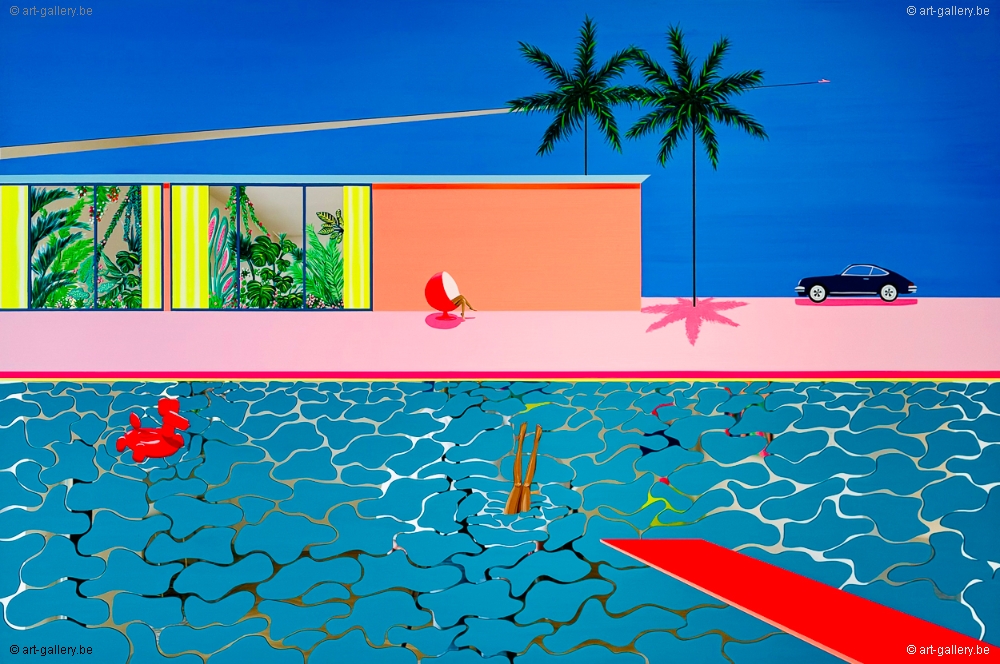 Peinture acrylique originale sur miroir Plexi. L'oeuvre est encadrée par un cadre en métal léger. Sans savoir où l'on se trouve, ni sans savoir ce qui va se passer ensuite, on se retrouve dans des lieux mystérieusement colorés. Des espaces calmes et sereins qui semblent perdus dans le temps et dépourvus de vie. Et pourtant... Puis un mouvement se produit et les surfaces des miroirs commencent à animer les tableaux grâce aux reflets de la lumière.