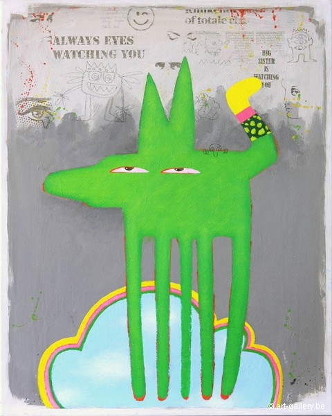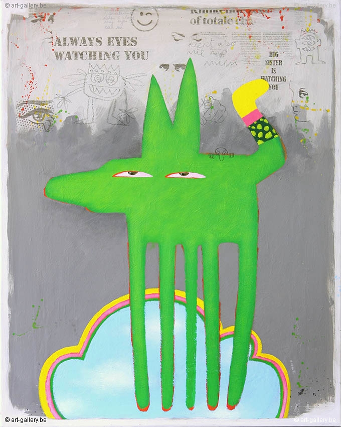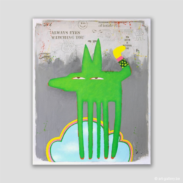 Peinture originale sur toile de Frank Slabbinck. L'oeuvre est encadrée dans un cadre caisson blanc.