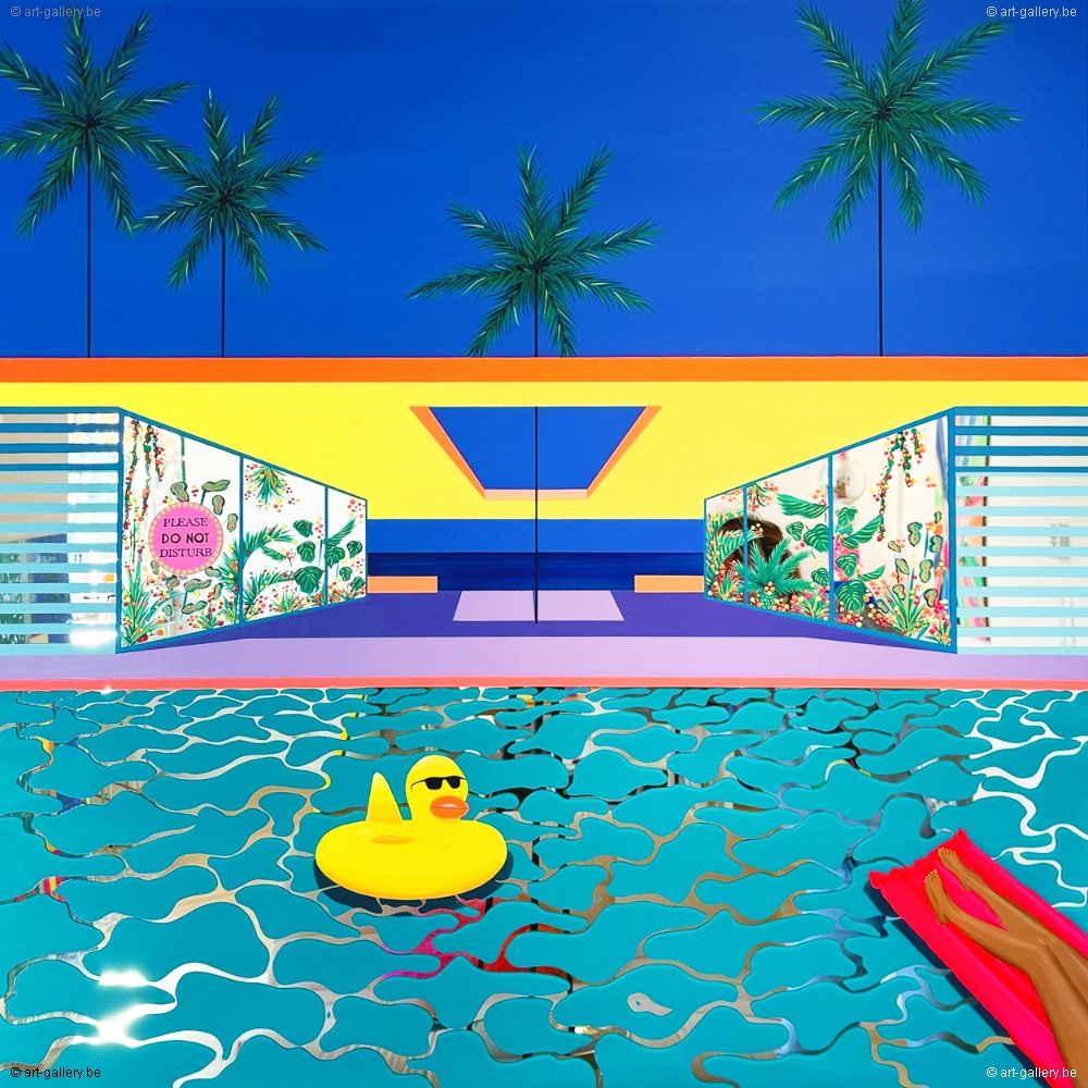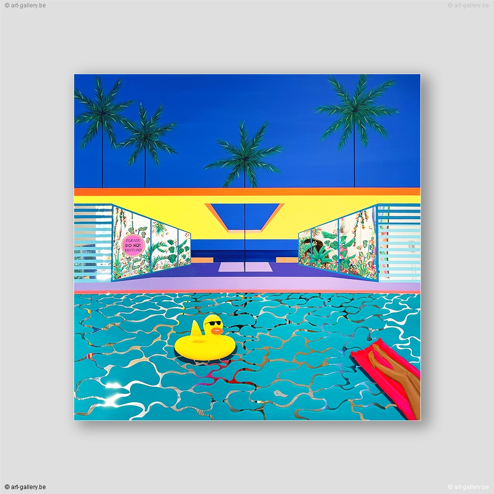 Peinture acrylique originale sur miroir Plexi. L'oeuvre est encadrée par un cadre en métal léger. Sans savoir où l'on se trouve, ni sans savoir ce qui va se passer ensuite, on se retrouve dans des lieux mystérieusement colorés. Des espaces calmes et sereins qui semblent perdus dans le temps et dépourvus de vie. Et pourtant... Puis un mouvement se produit et les surfaces des miroirs commencent à animer les tableaux grâce aux reflets de la lumière.
