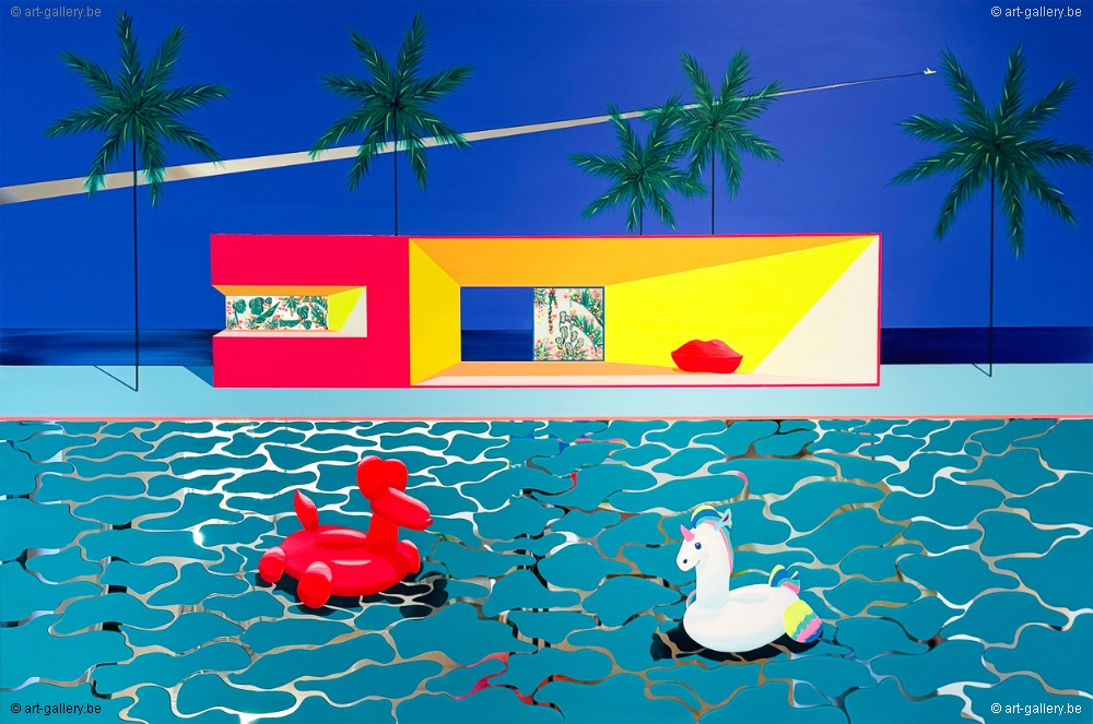 Peinture acrylique originale sur miroir Plexi. L'oeuvre est encadrée par un cadre en métal léger. Sans savoir où l'on se trouve, ni sans savoir ce qui va se passer ensuite, on se retrouve dans des lieux mystérieusement colorés. Des espaces calmes et sereins qui semblent perdus dans le temps et dépourvus de vie. Et pourtant... Puis un mouvement se produit et les surfaces des miroirs commencent à animer les tableaux grâce aux reflets de la lumière.