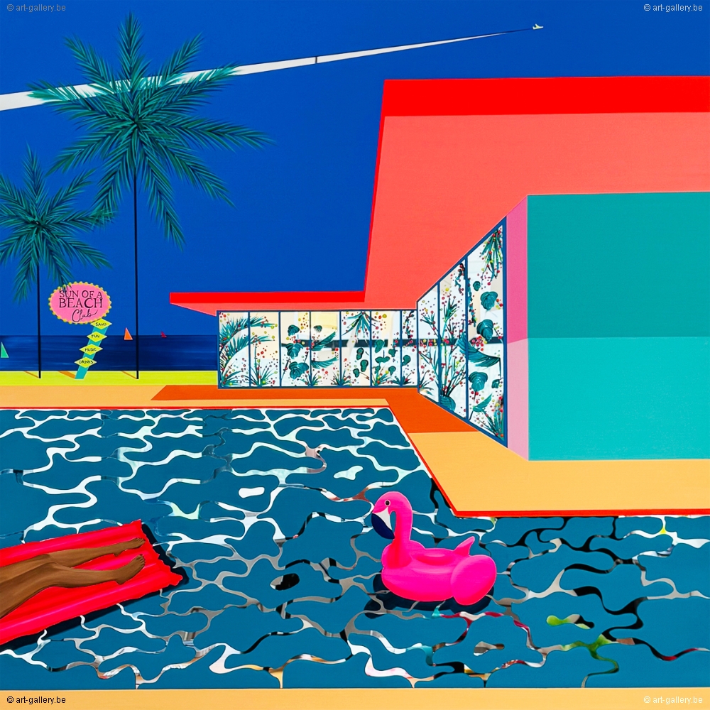 Peinture acrylique originale sur miroir Plexi. L'oeuvre est encadrée par un cadre en métal léger. Sans savoir où l'on se trouve, ni sans savoir ce qui va se passer ensuite, on se retrouve dans des lieux mystérieusement colorés. Des espaces calmes et sereins qui semblent perdus dans le temps et dépourvus de vie. Et pourtant... Puis un mouvement se produit et les surfaces des miroirs commencent à animer les tableaux grâce aux reflets de la lumière.