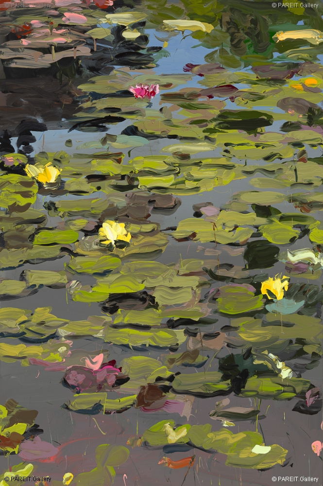 Dans sa série " Garden ", également appelée " Pleasure Gardens " pour les oeuvres les plus récentes de 2025, Jan De Vliegher capture la vitalité de la nature dans une explosion de couleurs et de touches expressives. Inspiré par les jardins historiques, les bouquets et les reflets sur l'eau, il floute volontairement la frontière entre figuration et abstraction. Fleurs, feuilles et lumière -photographiés en préparation de ces séries lors de visites aux Kew Gardens de Londres et dans les jardins de Claude Monet à Giverny -se transforment sur la toile en compositions dynamiques, profondes et énergétiques. La lumière vacillante et les teintes vibrantes suggèrent le mouvement constant du soleil sur un feuillage ou un pétale, conférant aux peintures un effet spatial marqué. Les jardins de De Vliegher invitent à une immersion sensorielle. Ces oeuvres monumentales -quelles que soient leurs dimensions -présentent plus que de simples motifs botaniques : elles entraînent le spectateur dans un univers coloré et en perpétuelle transformation, où nature et perception fusionnent en un ensemble rayonnant et stratifié.