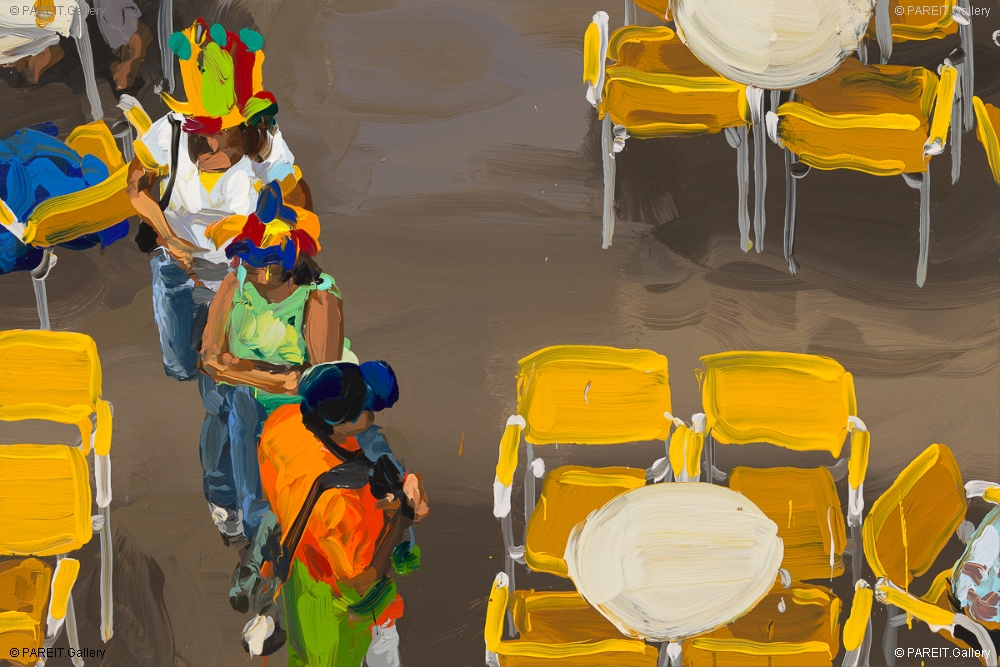 " Yellow Chairs " s'inscrit ainsi dans le prolongement de l'exploration de la lumière et de la mémoire entamée avec la série " San Marco ", et approfondit sa recherche picturale sur la manière dont l'espace et la couleur peuvent ensemble engendrer une expérience émotionnelle.
