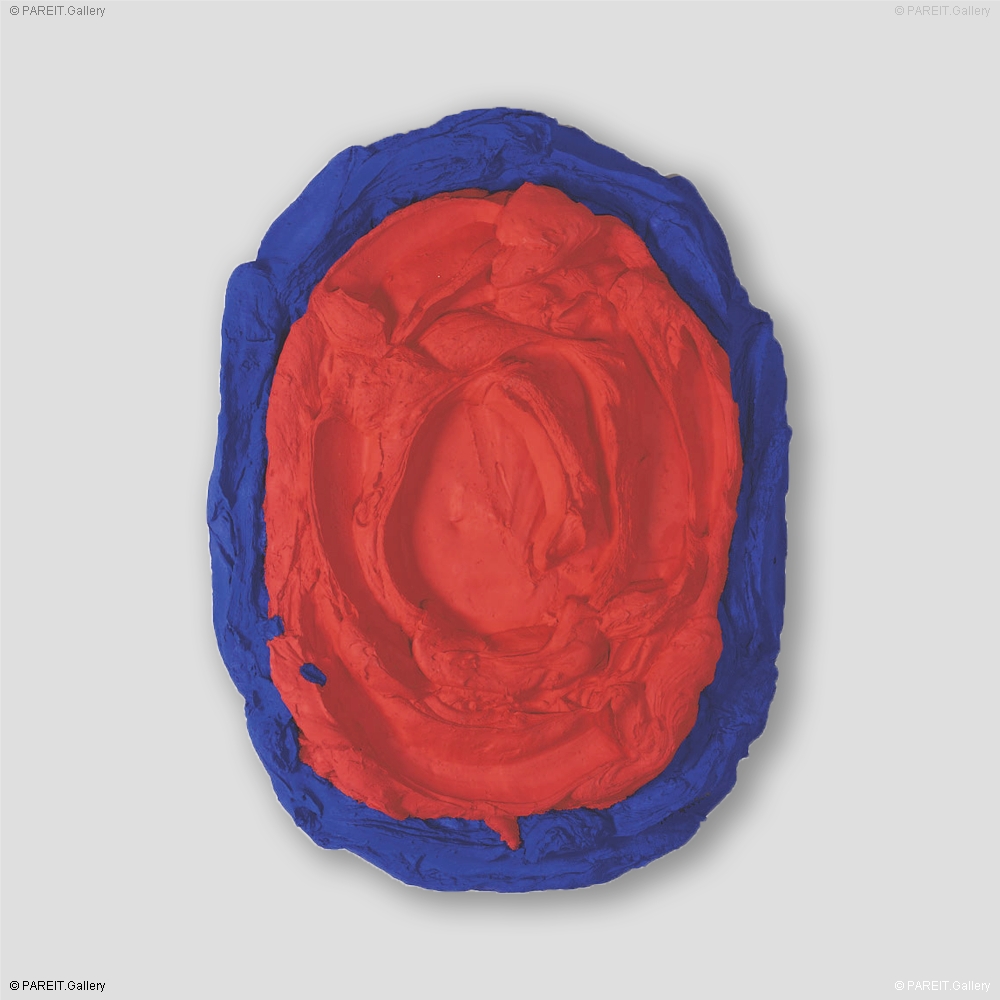 Résine de polyester avec acrylique en rouge et bleu, signé au feutre noir, numéroté 32/100