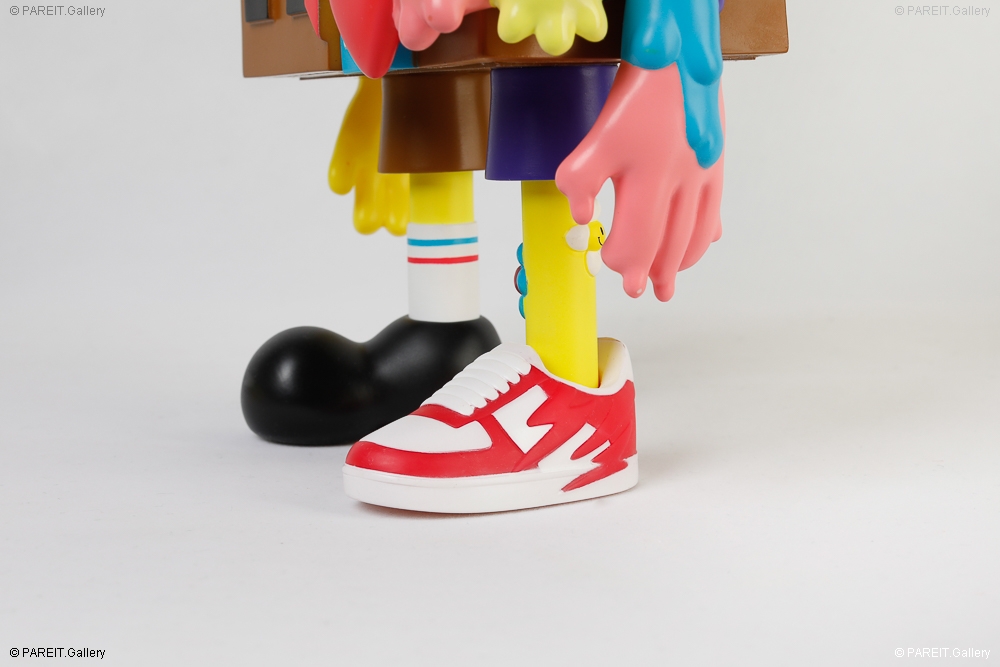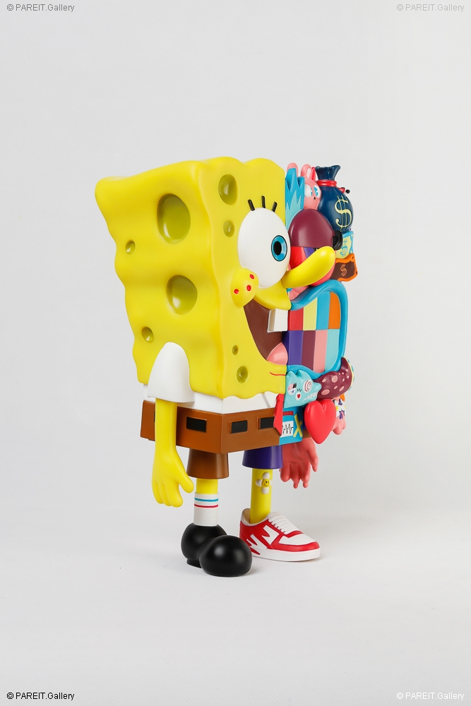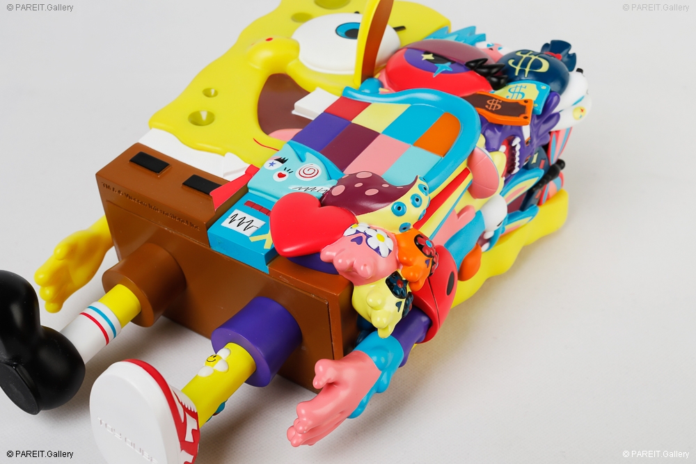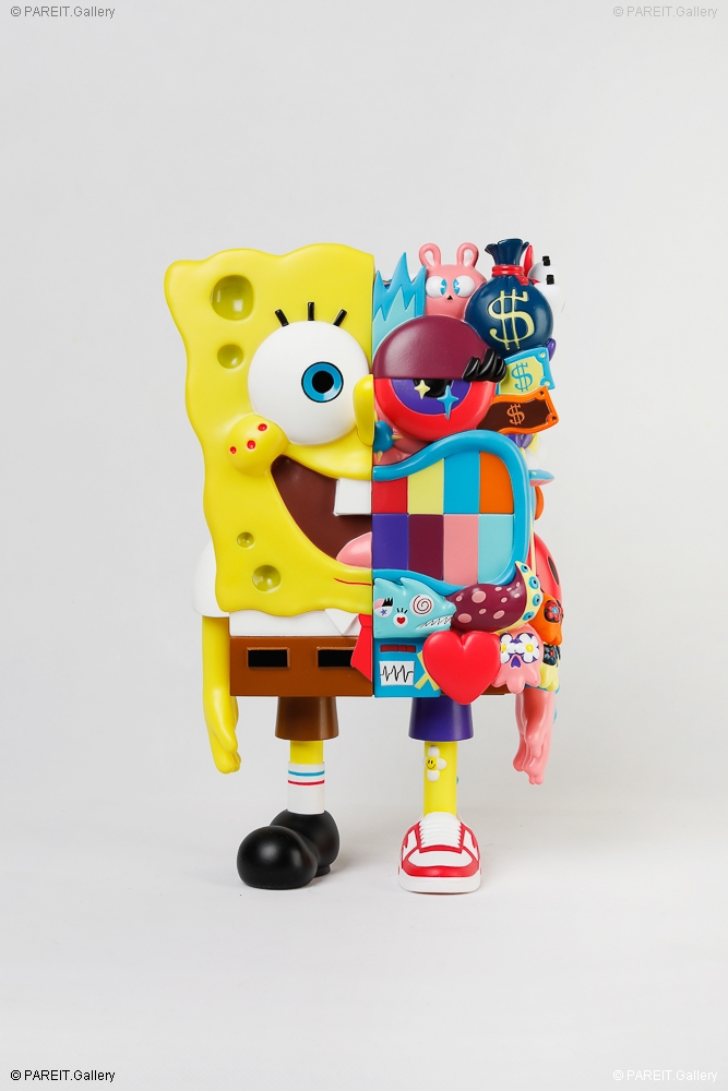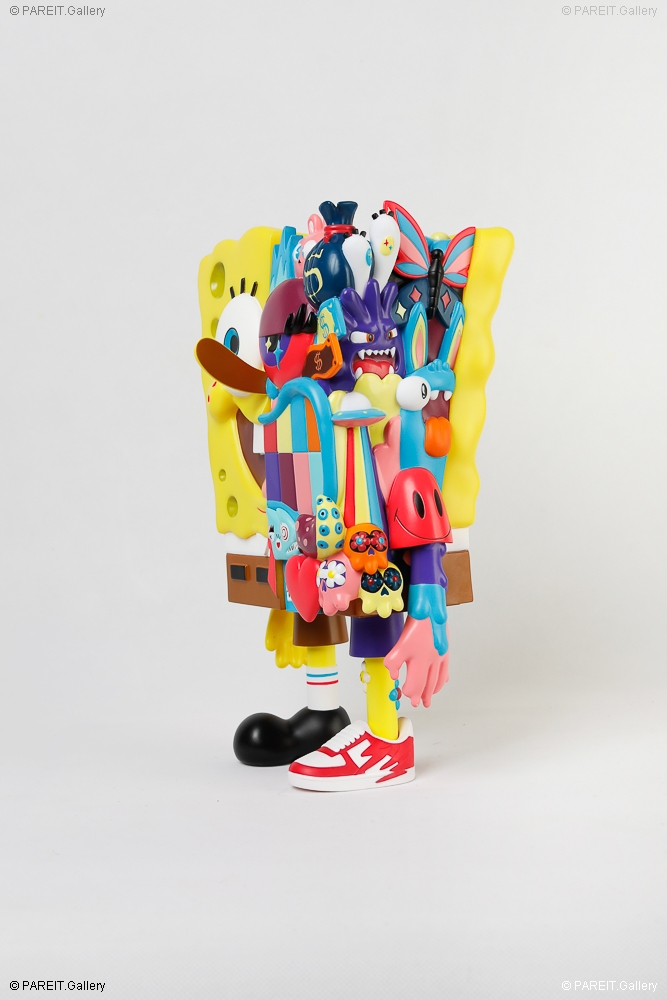 SpongeBob SquarePants est réinventé dans une explosion de couleurs et de motifs ludiques. Le personnage de Nickelodeon est entièrement immergé dans l'univers "Doodle" caractéristique de Vexx, créant une pièce de collection audacieuse et humoristique. Un crossover frappant entre culture pop et designer toys contemporains.