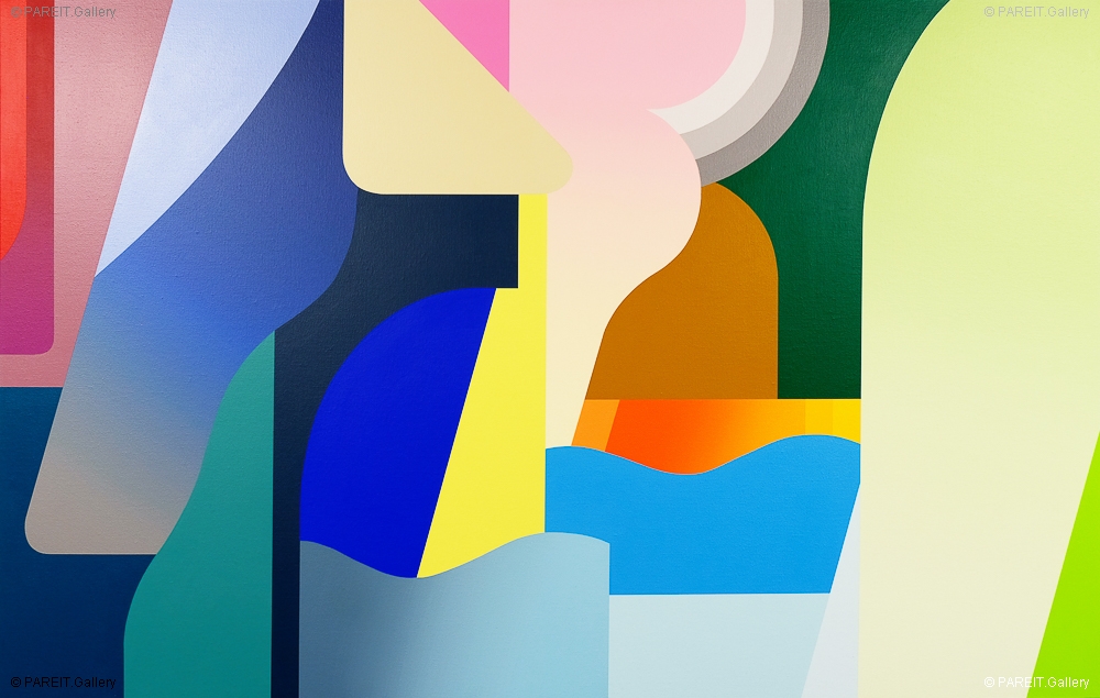Oeuvre originale sur toile, puissante et dynamique grâce à l'équilibre des couleurs et des formes.