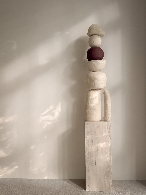 In een traag, intuďtief proces bouwt Janssens haar sculpturen laag voor laag op. Deze werkwijze laat ruimte voor het onverwachte en verleent elk werk een levendige spanning tussen controle en vrijheid. Haar totems verbeelden de gelaagdheid van het leven: afzonderlijke elementen die samen een krachtig geheel vormen.