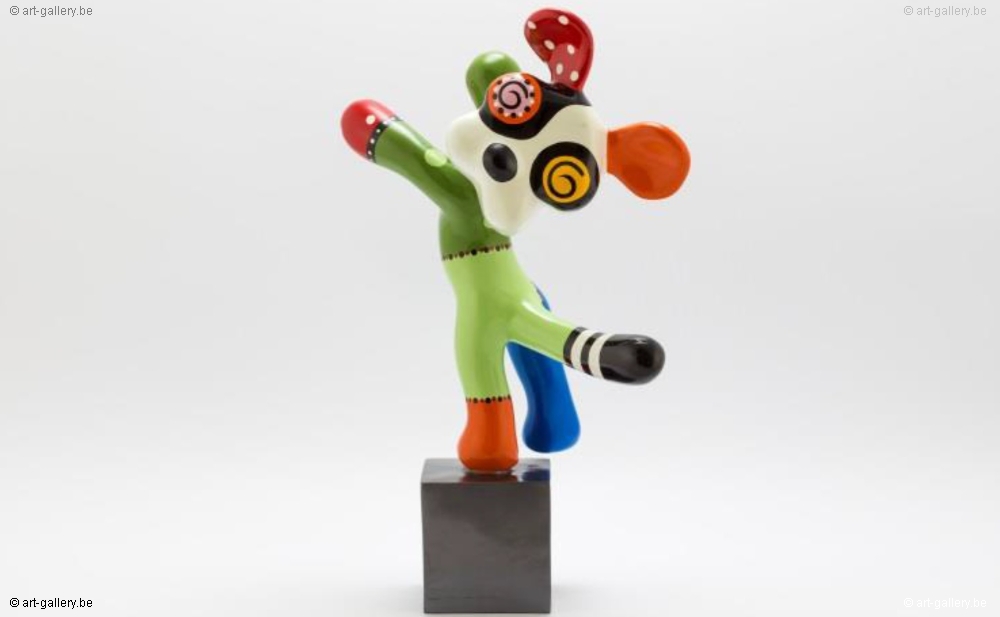 De dex small dog is een trendy en kleurrijk hondje die gemaakt werd in kunsthars. Het sculptuurtje is met de hand beschilderd en zorgt steevast voor een verfrissing van uw interieur. ?Met mijn kunst wil ik bereiken dat mensen even stil blijven staan en genieten van het moment: de vormen en kleuren op zich in laten werken. De toeschouwer moet er blij van worden.?