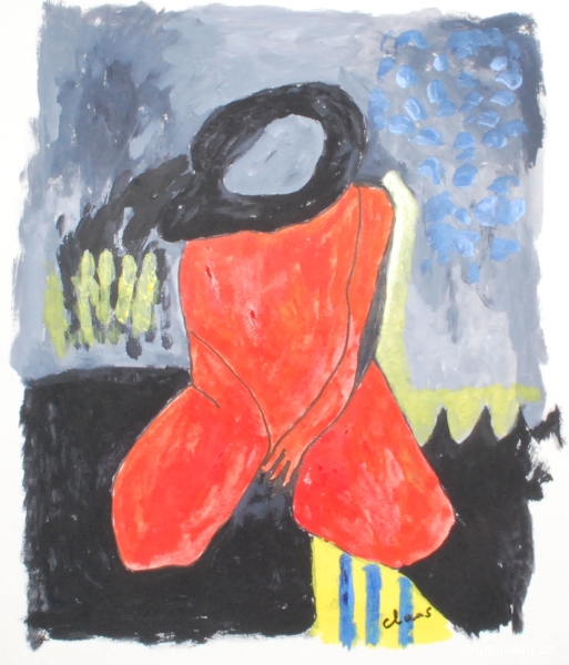 Origineel werk van schilder Hugo Claus. Het werk bevindt zich in perfecte staat, onderaan getekend. Het is ingekaderd in een lichtmetalen kader.