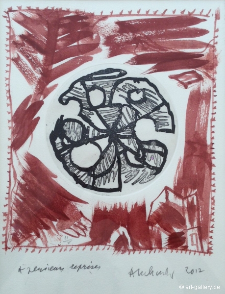 A plusieurs reprises is een origineel aquarel op papier van Pierre Alechinsky. Het werk is getekend en getiteld in potlood door Pierre Alechinsky. Dit werk is ingelijst in onstpiegeld glas met een witte lijst.