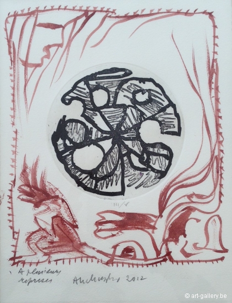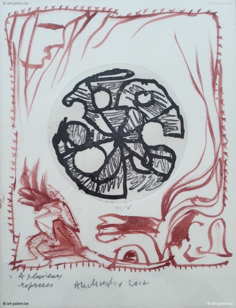 A plusieurs reprises is een origineel aquarel op papier van Pierre Alechinsky. Het werk is getekend en getiteld in potlood door Pierre Alechinsky. Dit werk is ingelijst in onstpiegeld glas met een witte lijst.
