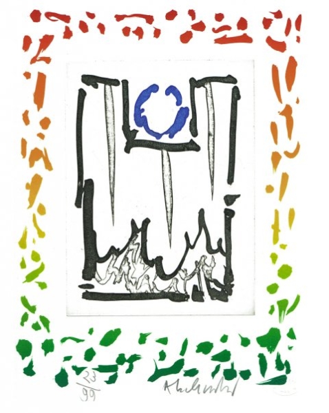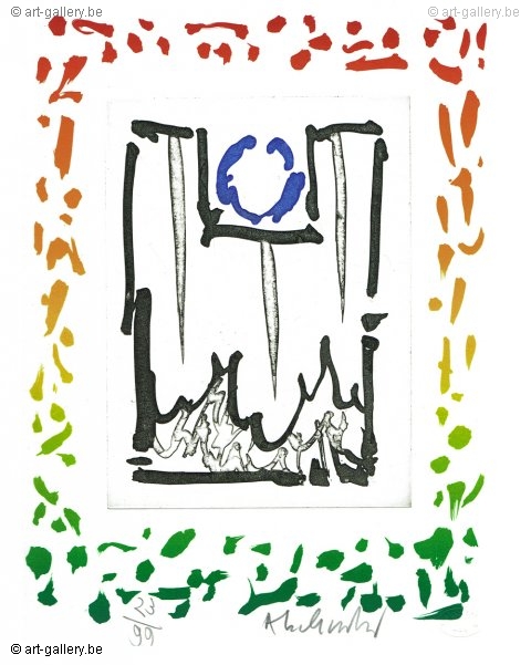 Lithografie met ets van Pierre Alechinsky getekend en genummerd op 99 + A/Z exemplaren. Dubbele druktechniek, zeer goed werk!