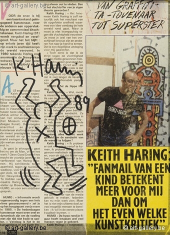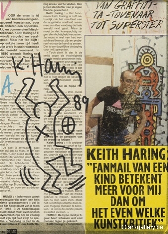 Extra info: Originele tekening van Keith Haring op een eigen artikel uit de humo.