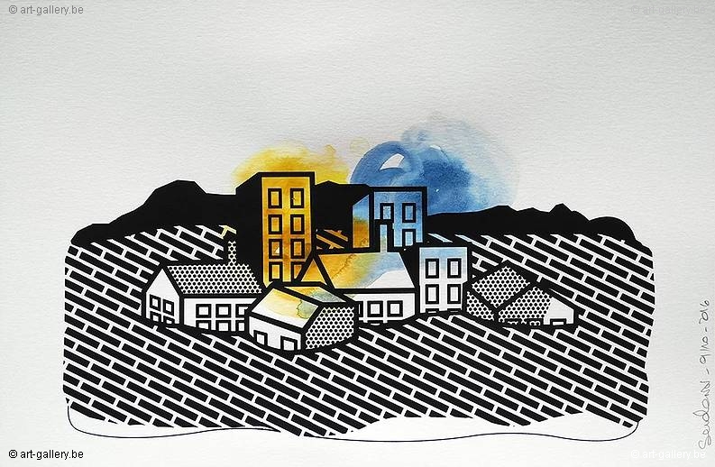 Zeefdruk van Sara Conti uitgegeven op 10 exemplaren. Ieder werk werd met de hand ingekleurd met aquarel zodat ieder werk uniek is.