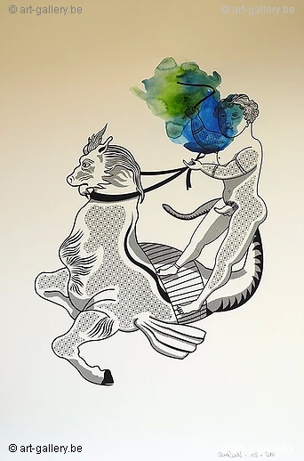 Zeefdruk van Sara Conti uitgegeven op 5 exemplaren. Ieder werk werd met de hand ingekleurd met aquarel zodat ieder werk uniek is.
