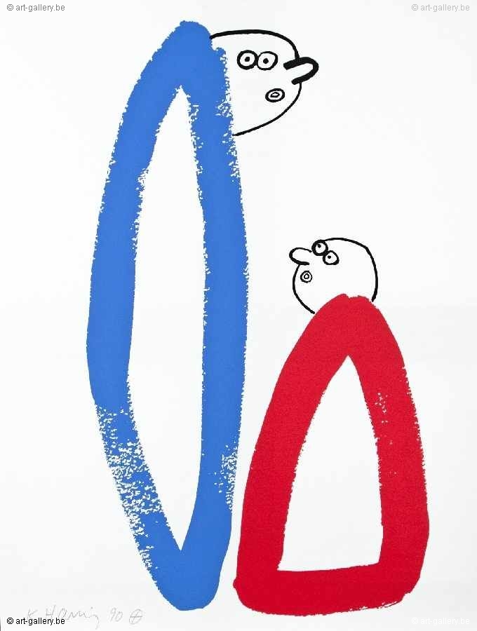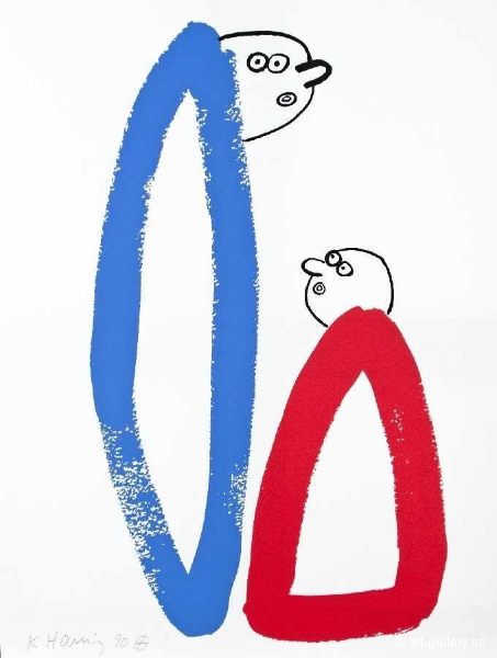 Gesigneerd en genummerd op 90 exemplaren. Achteraan ook een certificaat van de Keith Haring foundation. Voor de reeks Red and Blue gebruikte Keith Haring enkel blauw en rood om op een essentiële en doordachte manier zijn compositie samen te stellen. TOP! Ook ingelijst te verkrijgen voor 4500?.