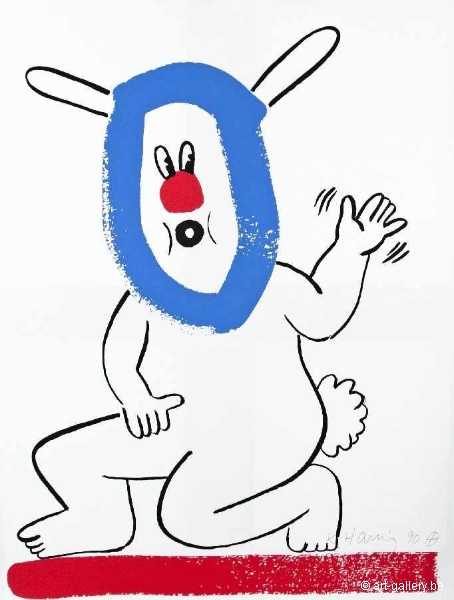 Gesigneerd en genummerd op 90 exemplaren. Achteraan ook een certificaat van de Keith Haring foundation. Voor de reeks Red and Blue gebruikte Keith Haring enkel blauw en rood om op een essentiële en doordachte manier zijn compositie samen te stellen. TOP! Ook ingelijst te verkrijgen voor 4500?.