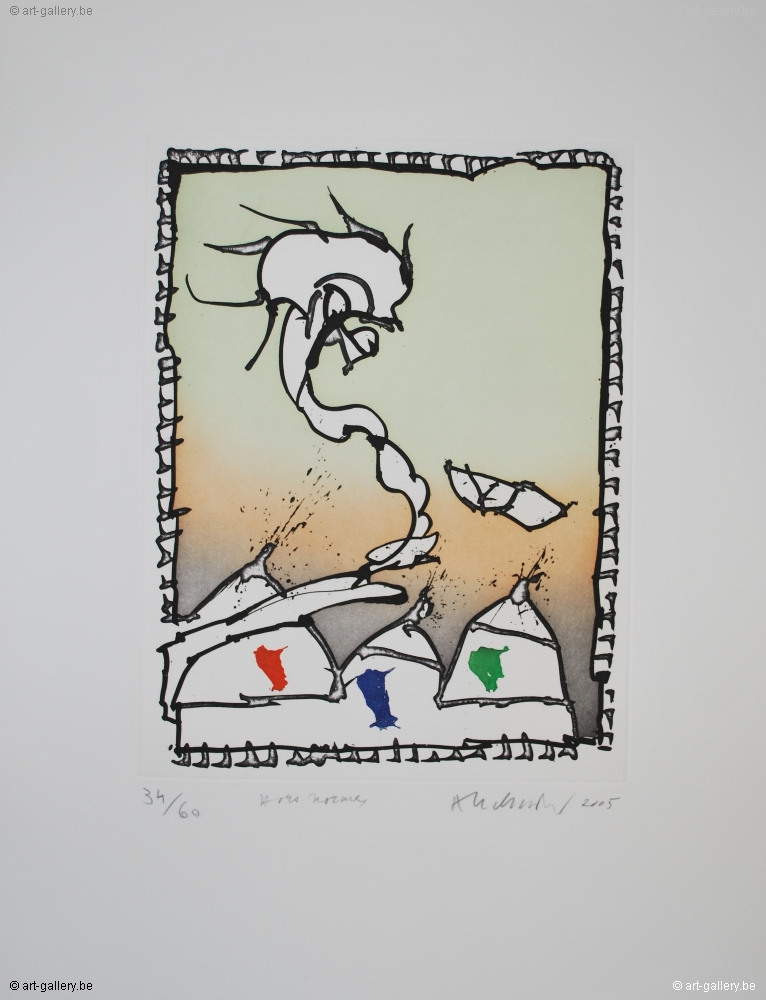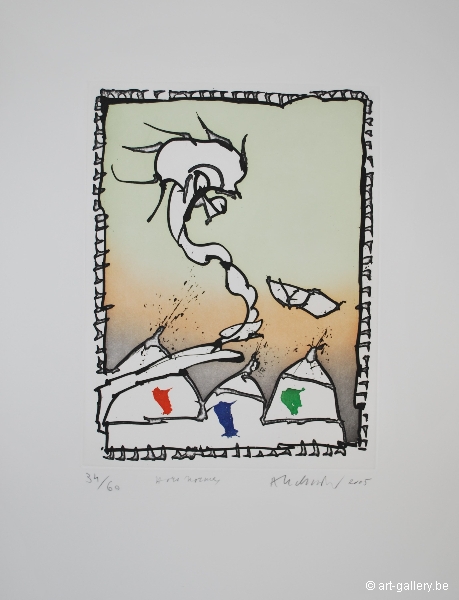 Lithografie van Pierre Alechinsky genummerd en gesigneerd op 60 exemplaren.