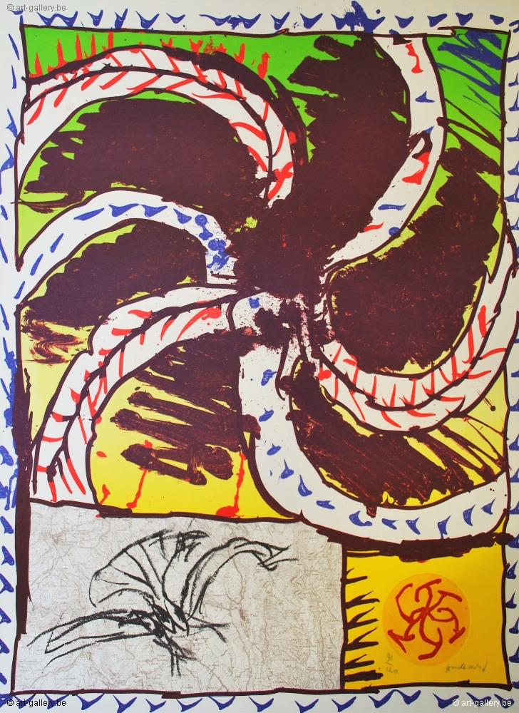 Lithografie met ets van Pierre Alechinsky genummerd en gesigneerd op 120 exemplaren.