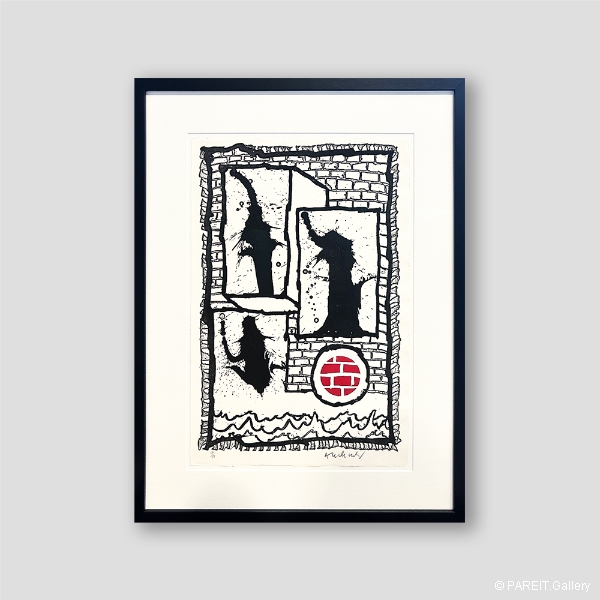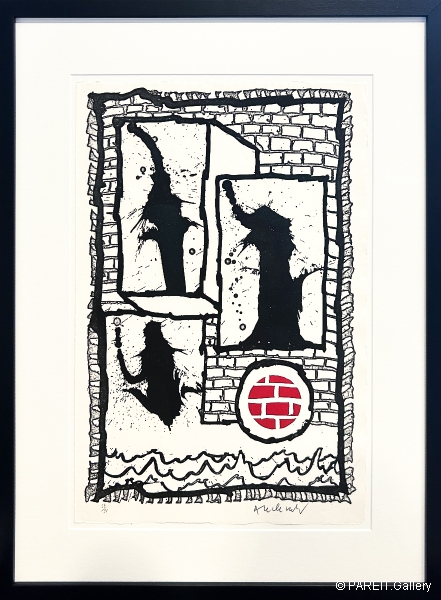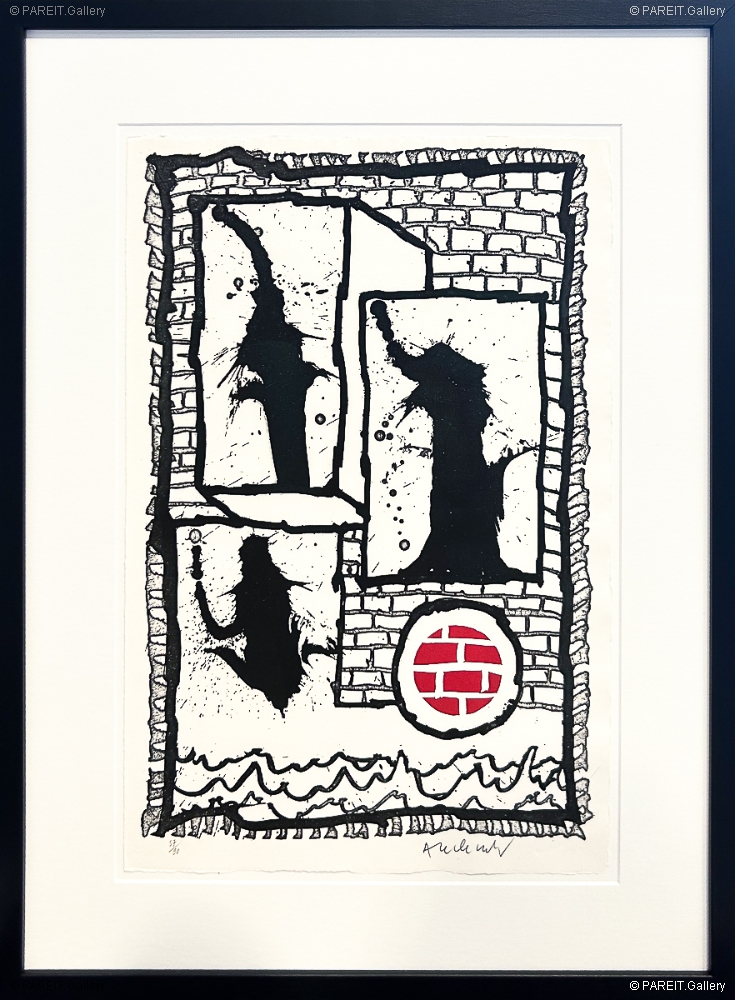 Kleurenets van Pierre Alechinsky gedrukt op handgeschept papier. Getekend en genummerd op 90 exemplaren.