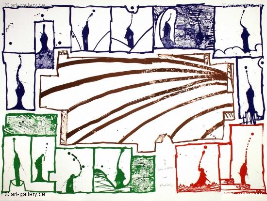 Lithografie van Pierre Alechinsky op rijstpapier. Getekend en genummerd op 40 exemplaren. Dit werk is ingelijst in een plexibox.