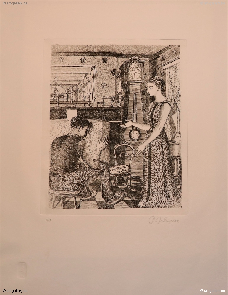 Ets op tekenpapier. Met de hand getekend en genummerd door Paul Delvaux op 45 exemplaren + enkele EA