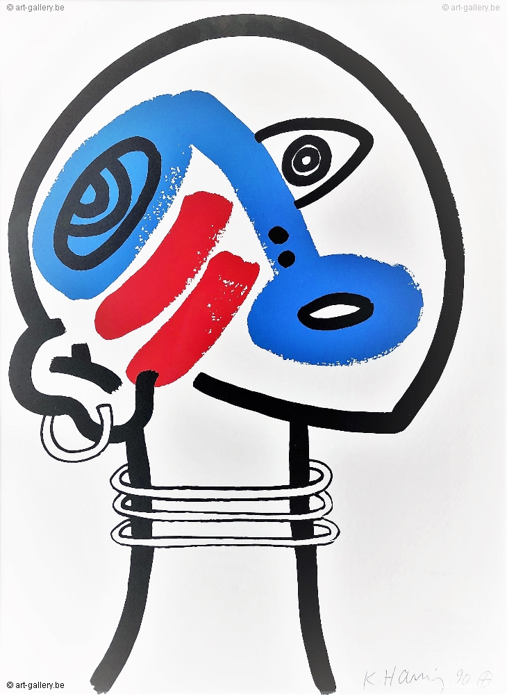 Extra info: Gesigneerd en genummerd op 90 exemplaren. Achteraan ook een certificaat van de Keith Haring foundation. Voor de reeks Red and Blue gebruikte Keith Haring enkel blauw en rood om op een essentiële en doordachte manier zijn compositie samen te stellen. TOP! Het werk is professioneel ingelijst met ontspiegeld uv-bestendig glas.