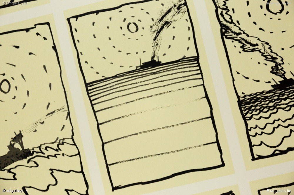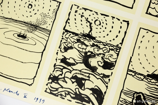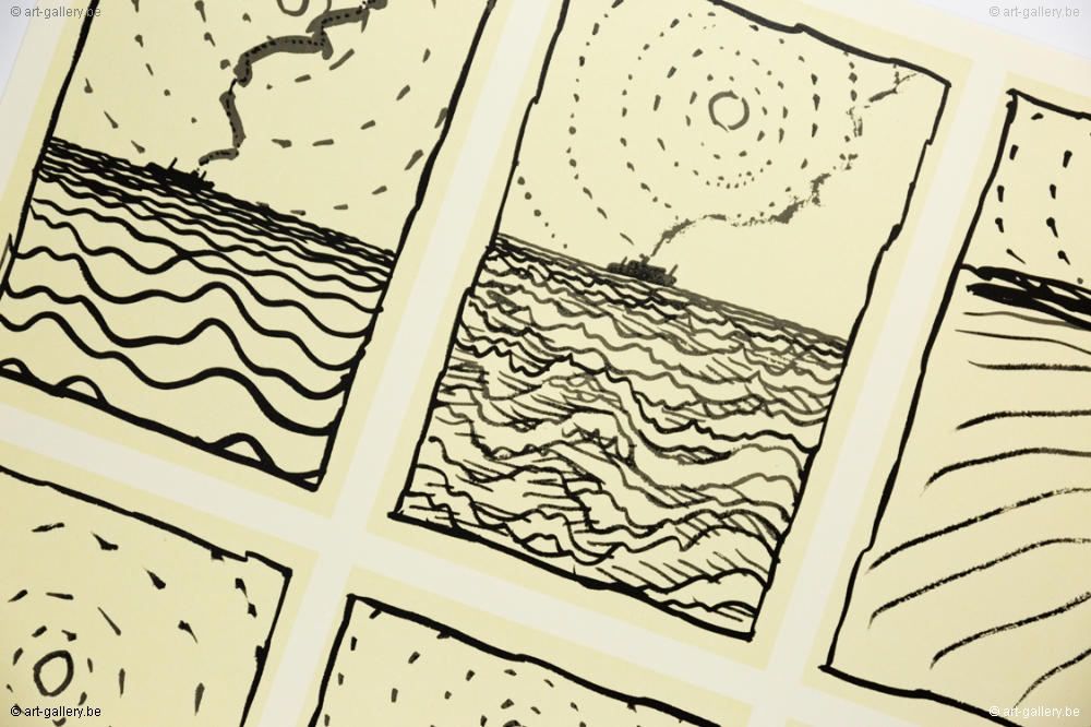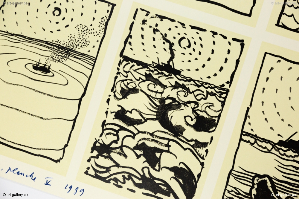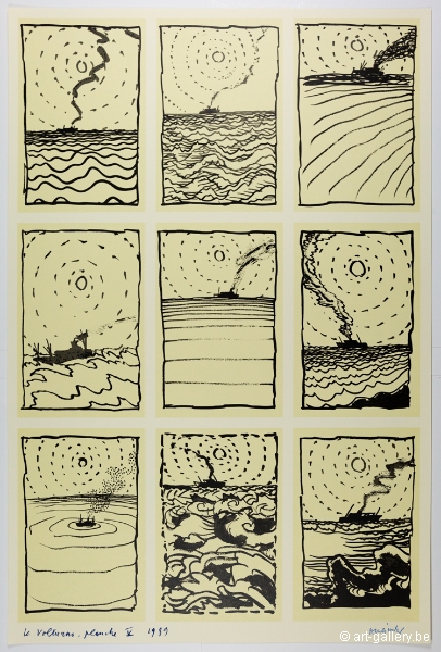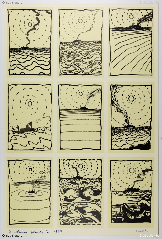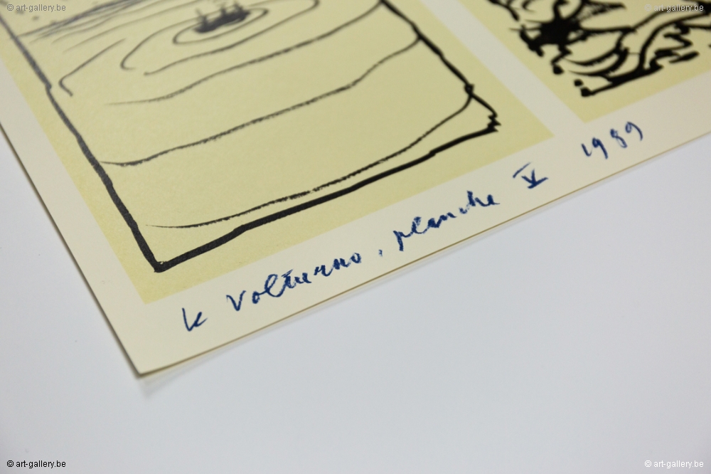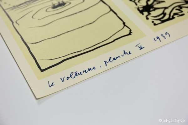 Lithografie van Pierre Alechinsky. Uitgegeven in een oplage van 99 + XX + 20HC. In druk getekend, getiteld en voorzien van een jaartal. Het aangeboden exemplaar is 2/20HC. Het werk bevat negen studietekeningen voor de reeks 'Le Volturno' die gemaakt werd in 1989.