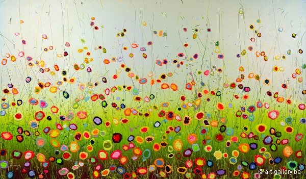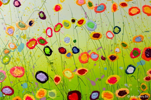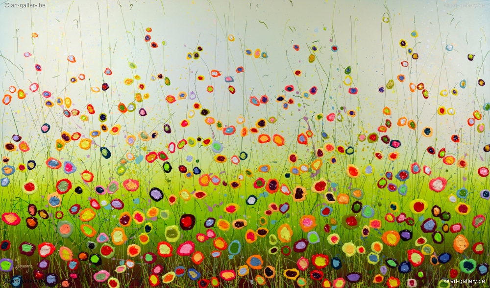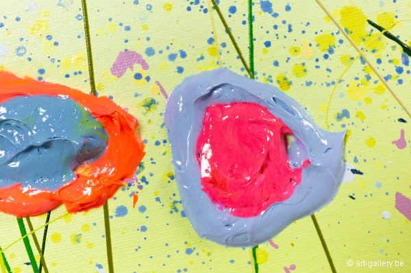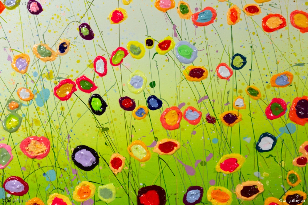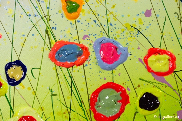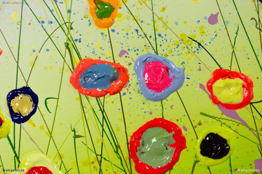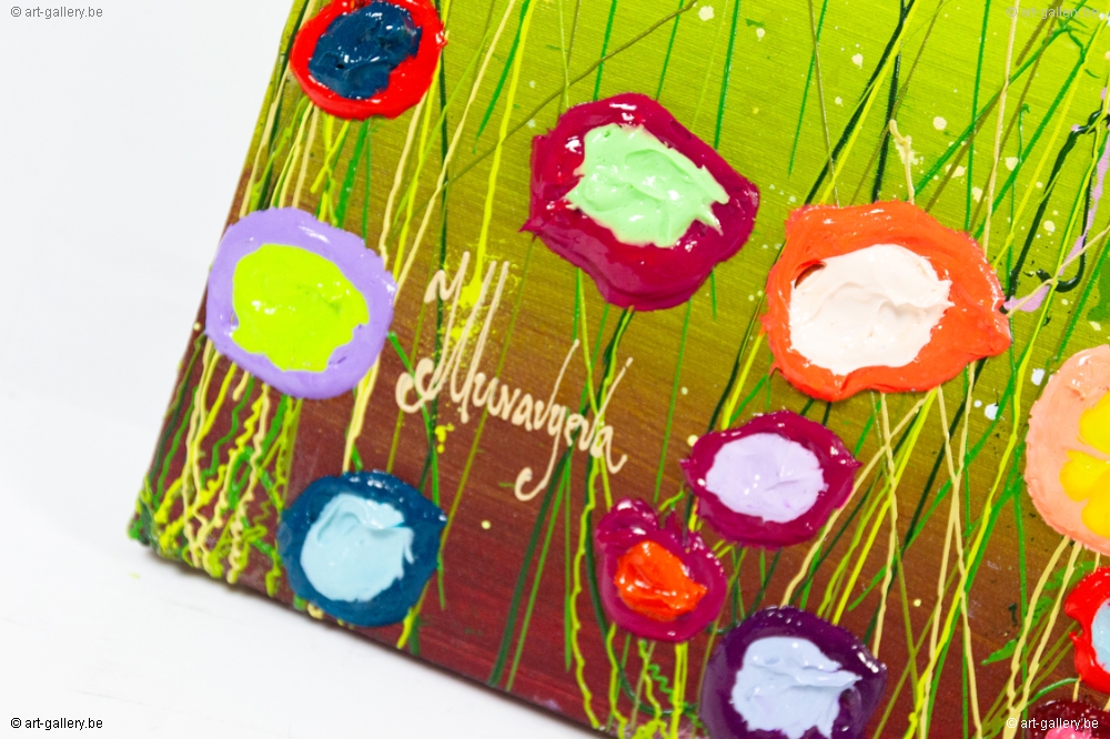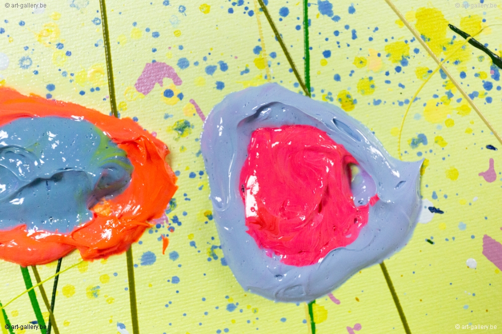 Het origineel schilderij is dik opgezet met acrylverf en heeft een schitterende kleurencombinatie. De speelsheid, vrolijkheid en levendige kleuren waar Yulia mee werkt zijn werkelijk prachtig en de moeite waard om eens in het echt te komen bekijken. De werken zijn opgespannen op de dik spieraam, waardoor het schilderij nog meer body krijgt.