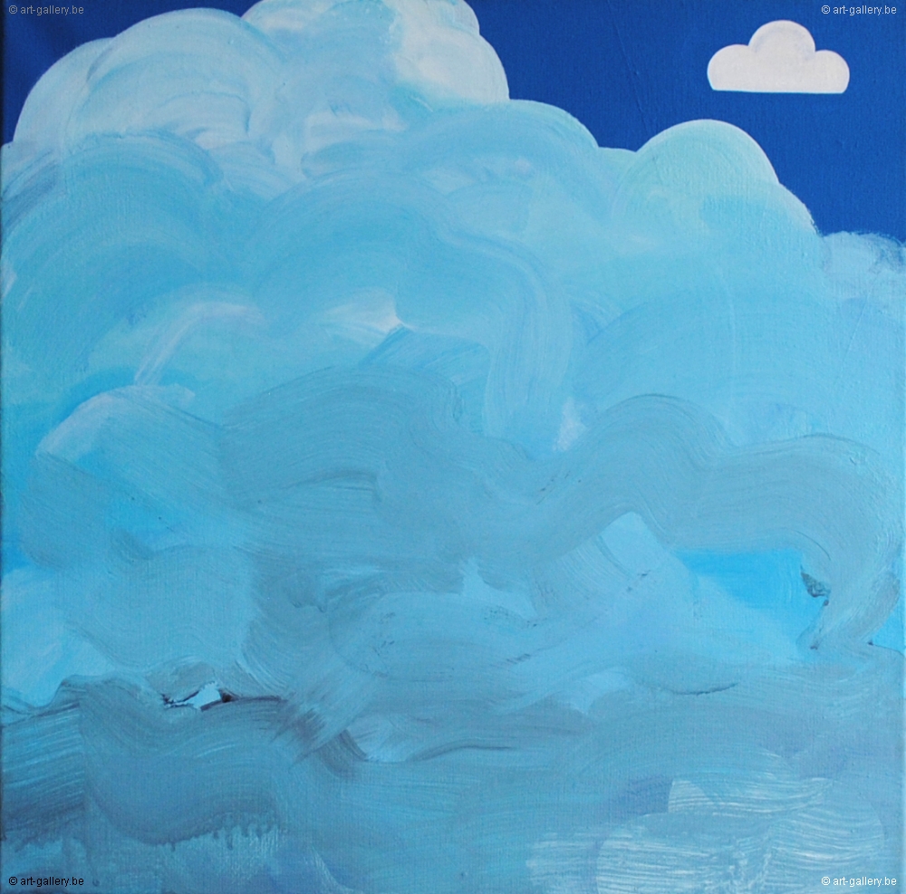 Origineel schilderij op linnen van Sidney Aelbrecht. Het werk is ingelijst in een witte omlijsting.