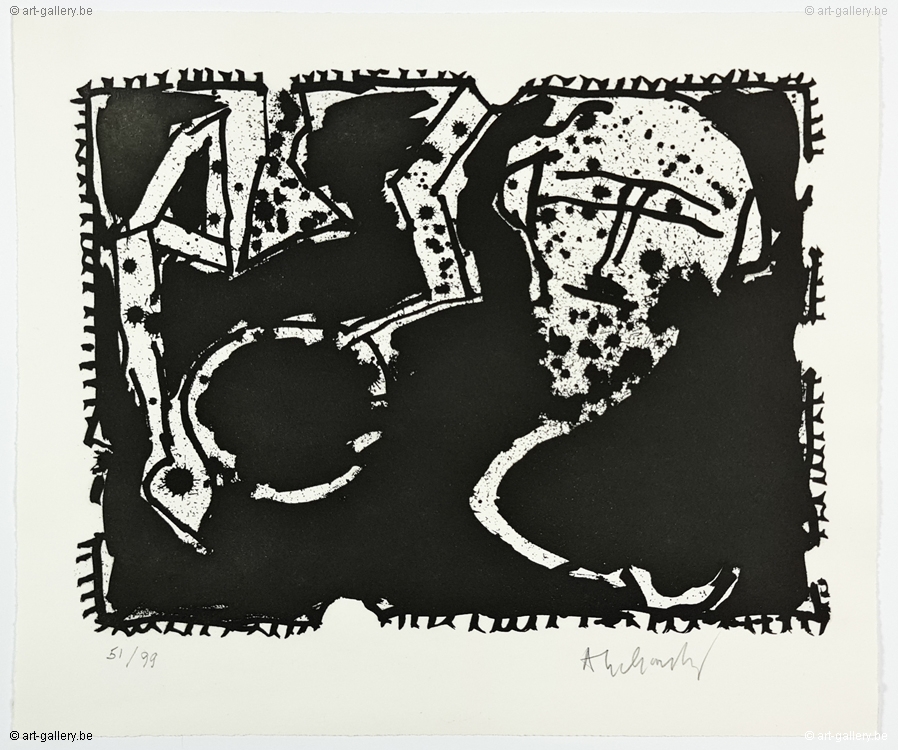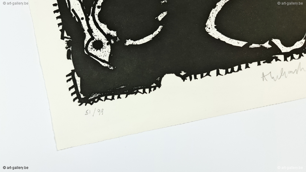 Originele ets met potlood gesigneerd door de kunstenaar, genummerd 51/99. Het werk is ingelijst in een witte lijst met ontspiegeld glas.