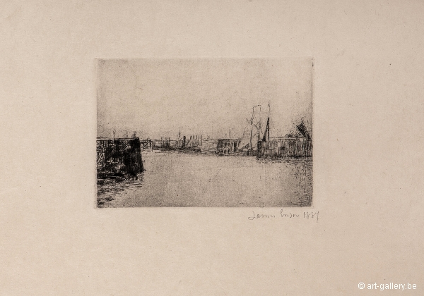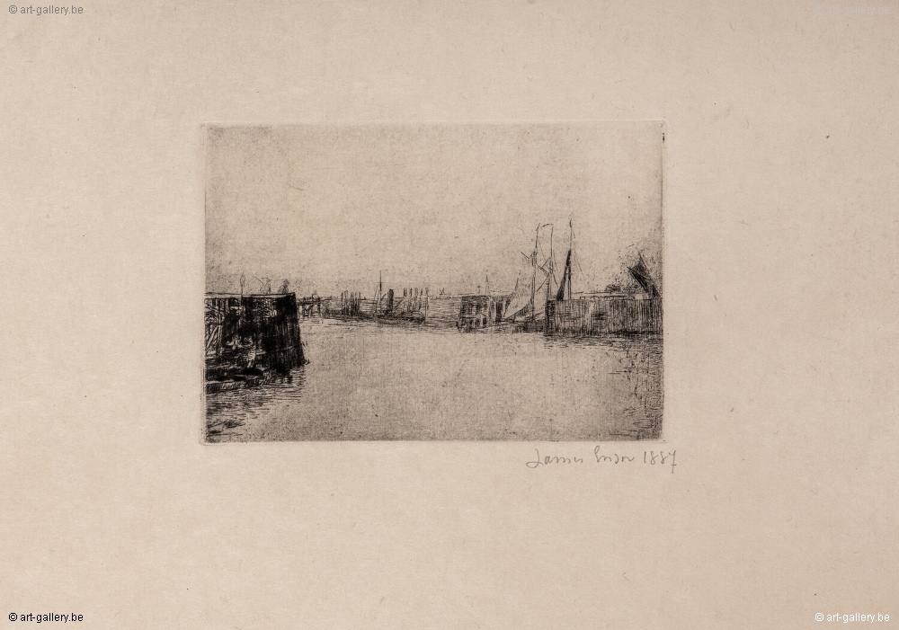 Ets van James Ensor met de hand gesigneerd en gedateerd. Opgenomen in het boek: A. Taevernier n° 14.